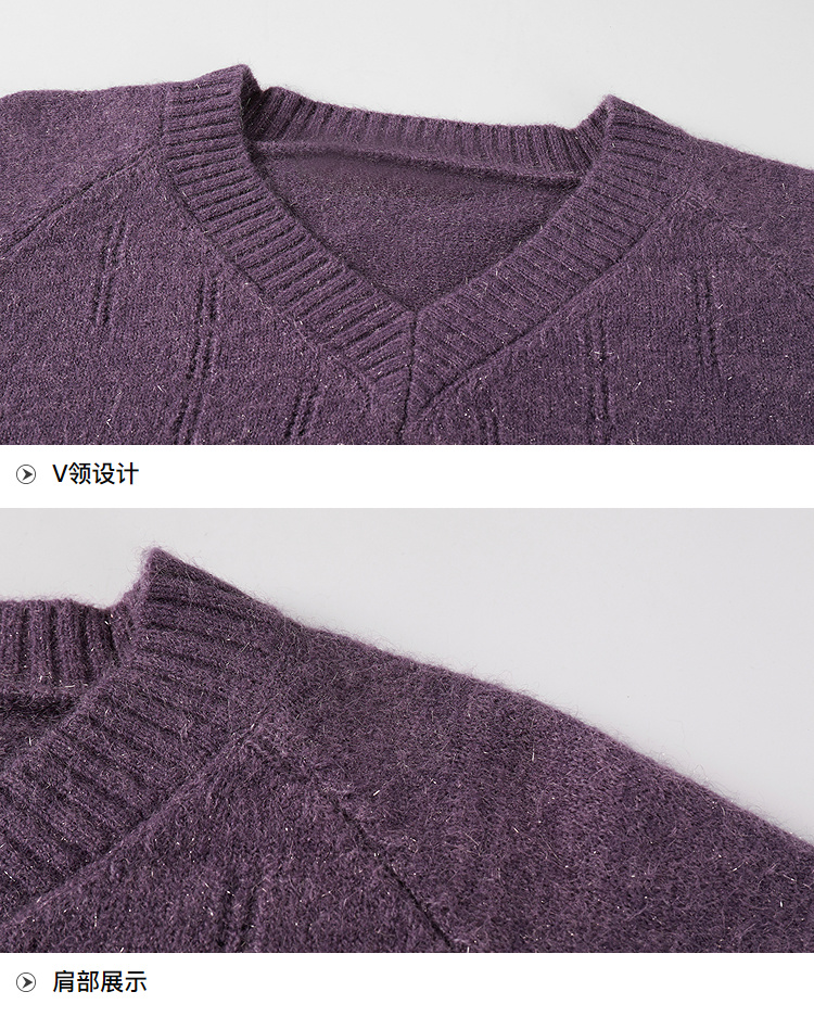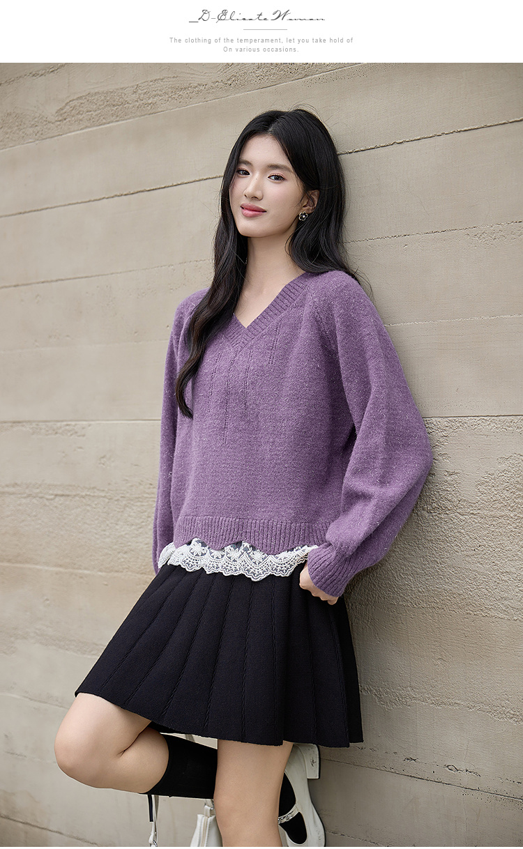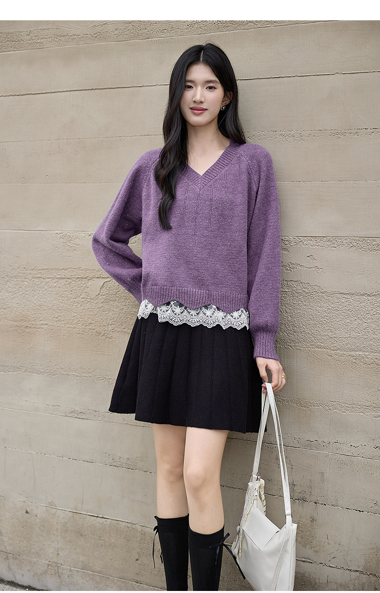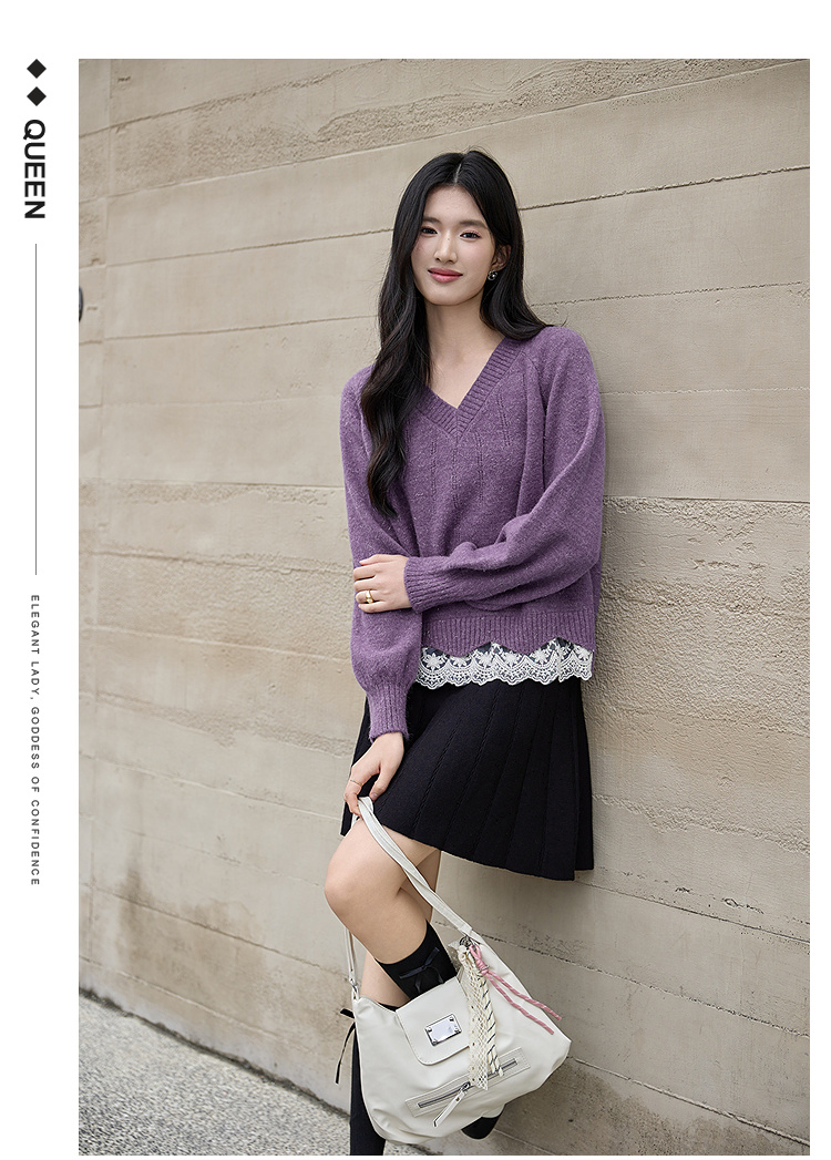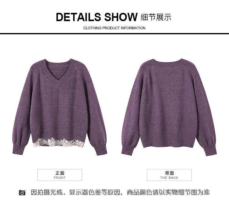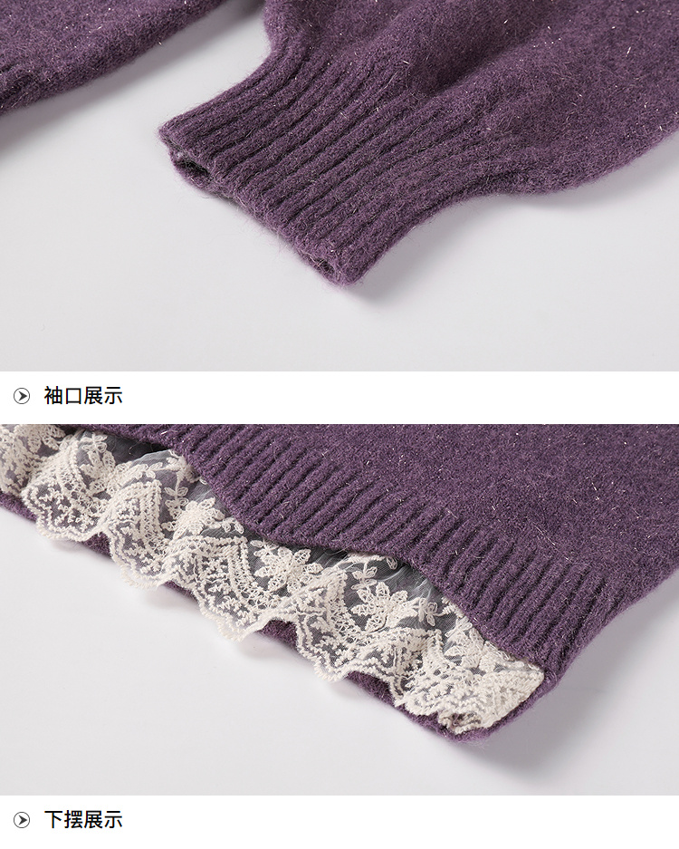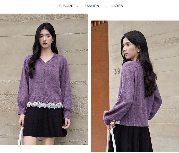 奢姿大码女装2025冬季时尚蕾丝拼接V领针织衫胖妹妹气质减龄上衣9854653951