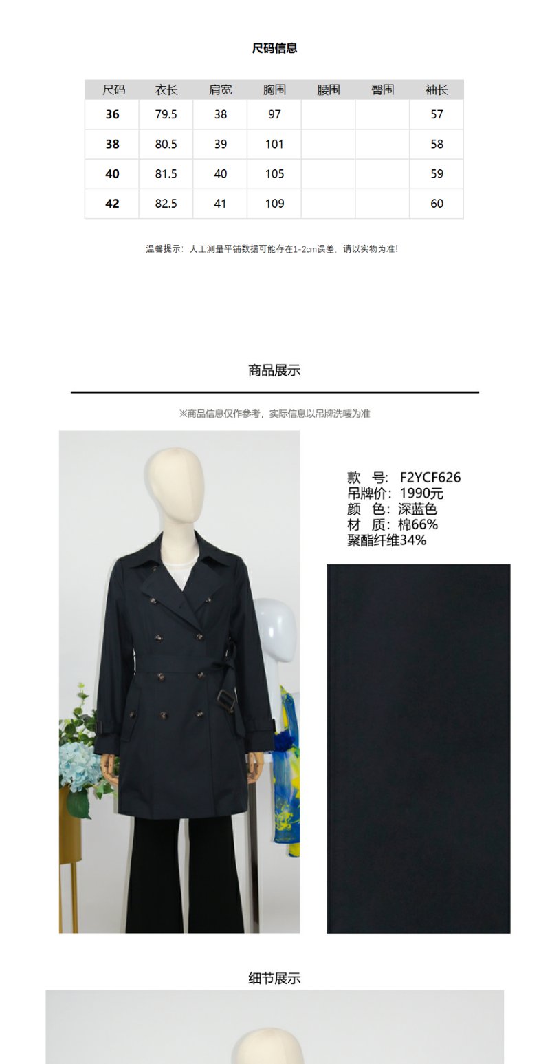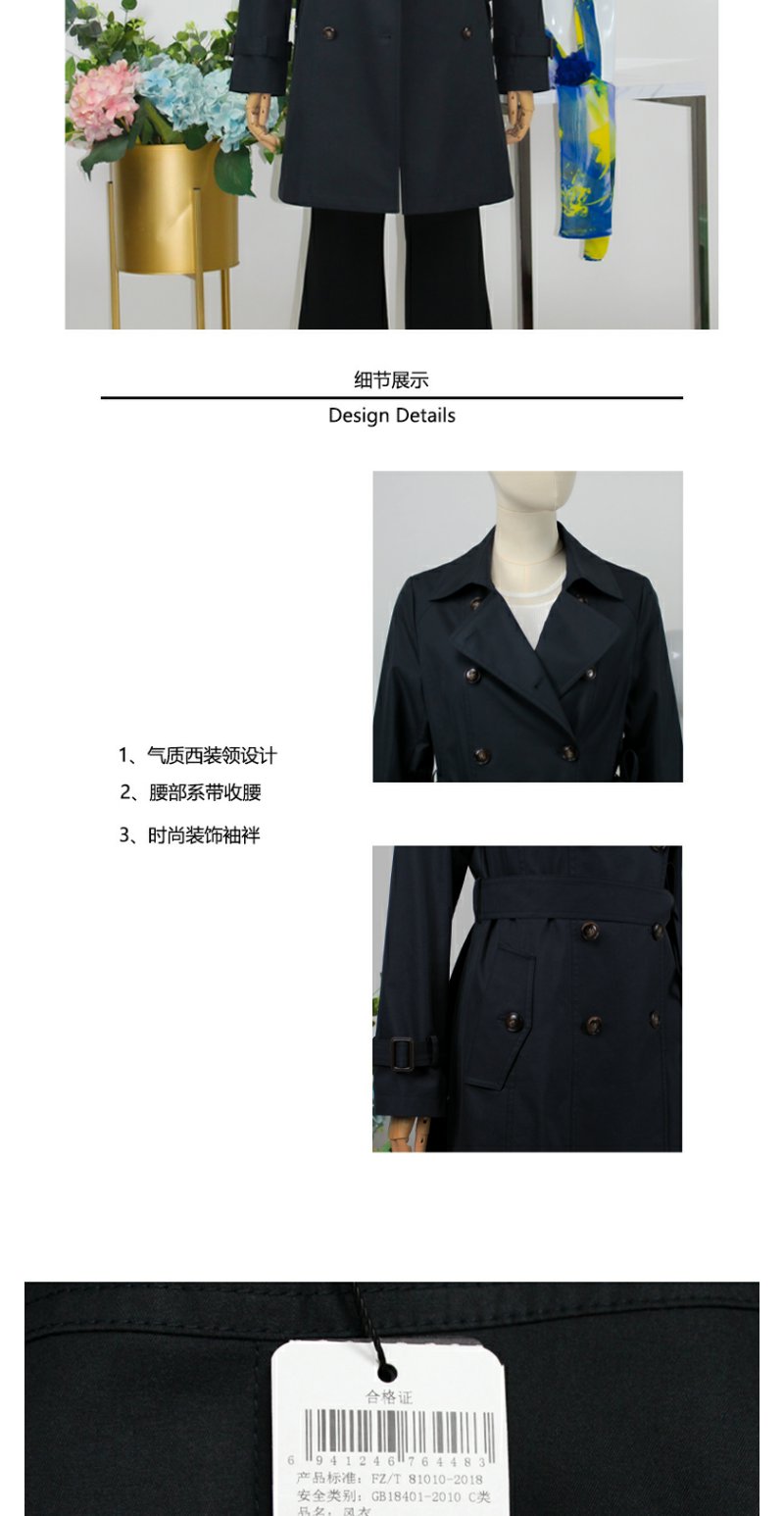 FOCALS福柯斯春秋新款双排扣百搭显瘦中长款外套风衣F2YCF626B3