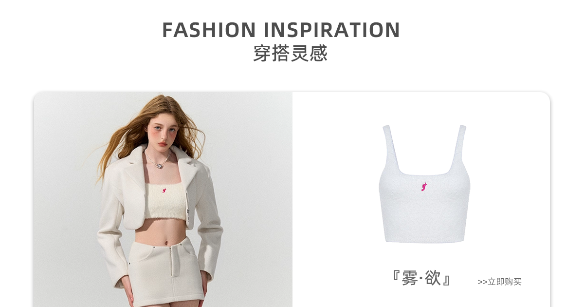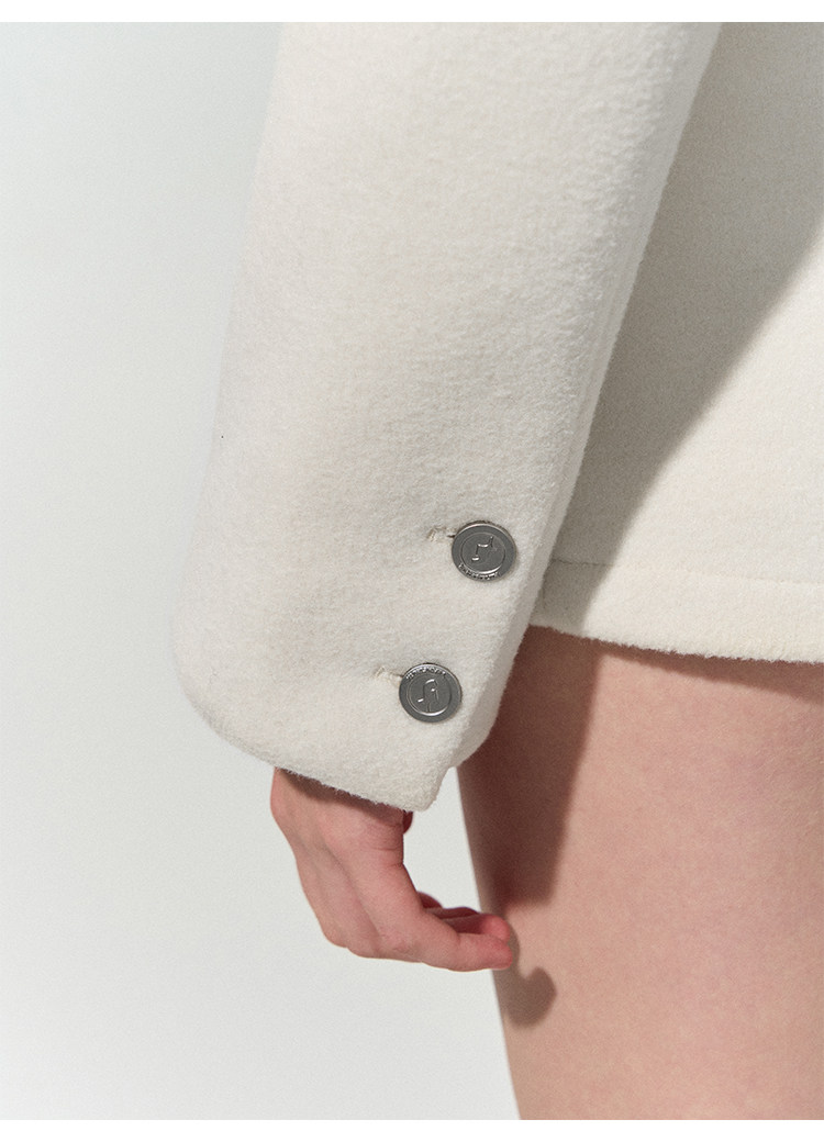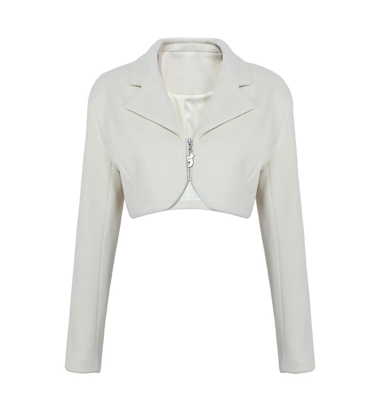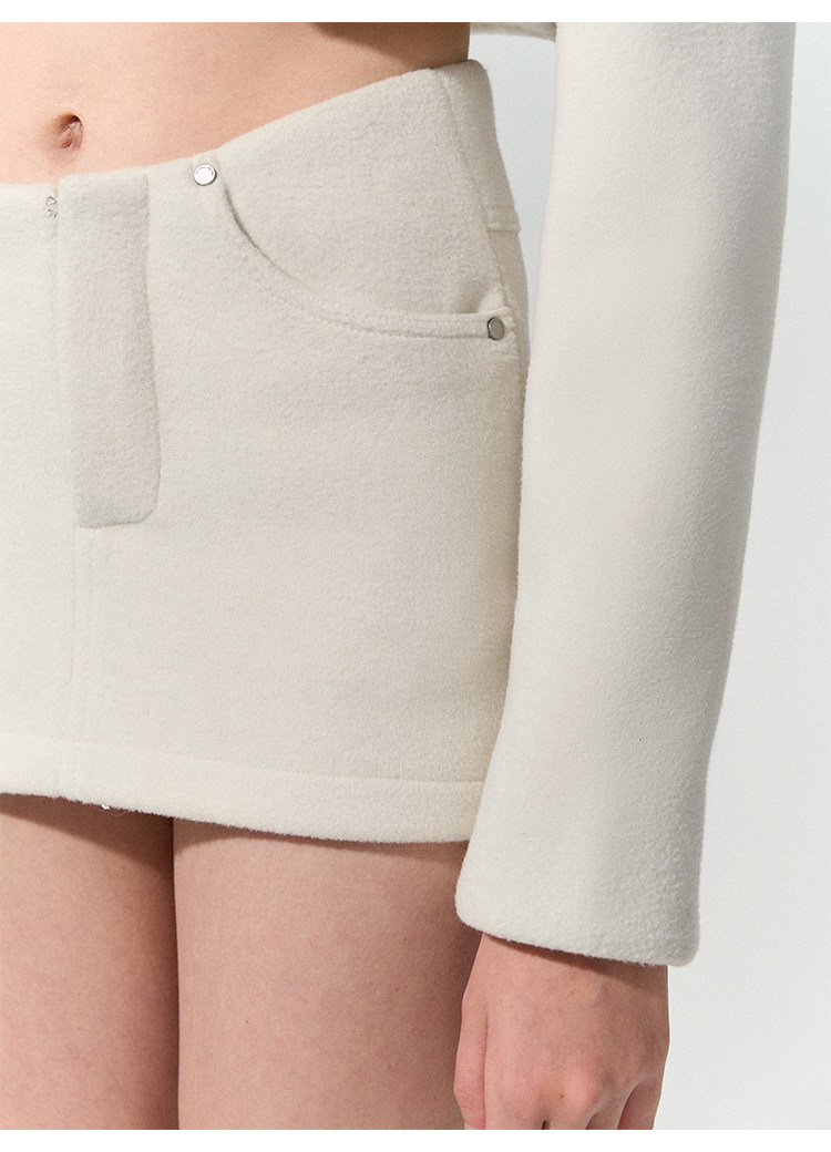 FTT FlyTheTruth『梦游职场』白色毛呢短外套女秋V字腰半身裙短裙