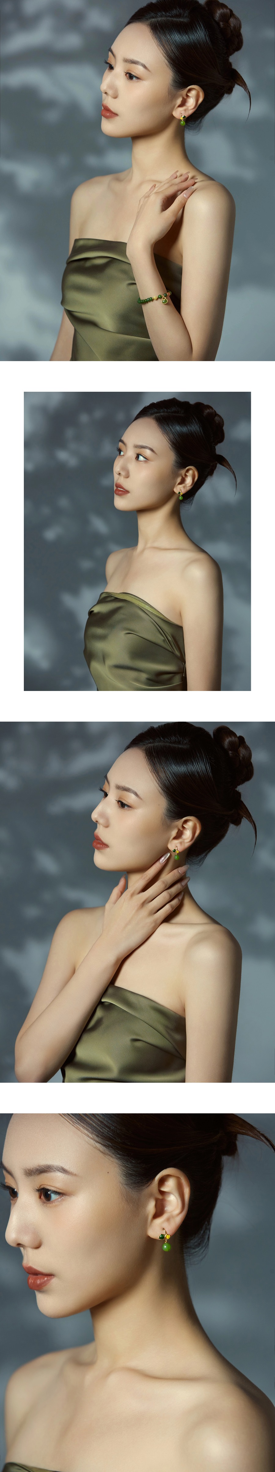 『盎然』和田碧玉花朵耳环