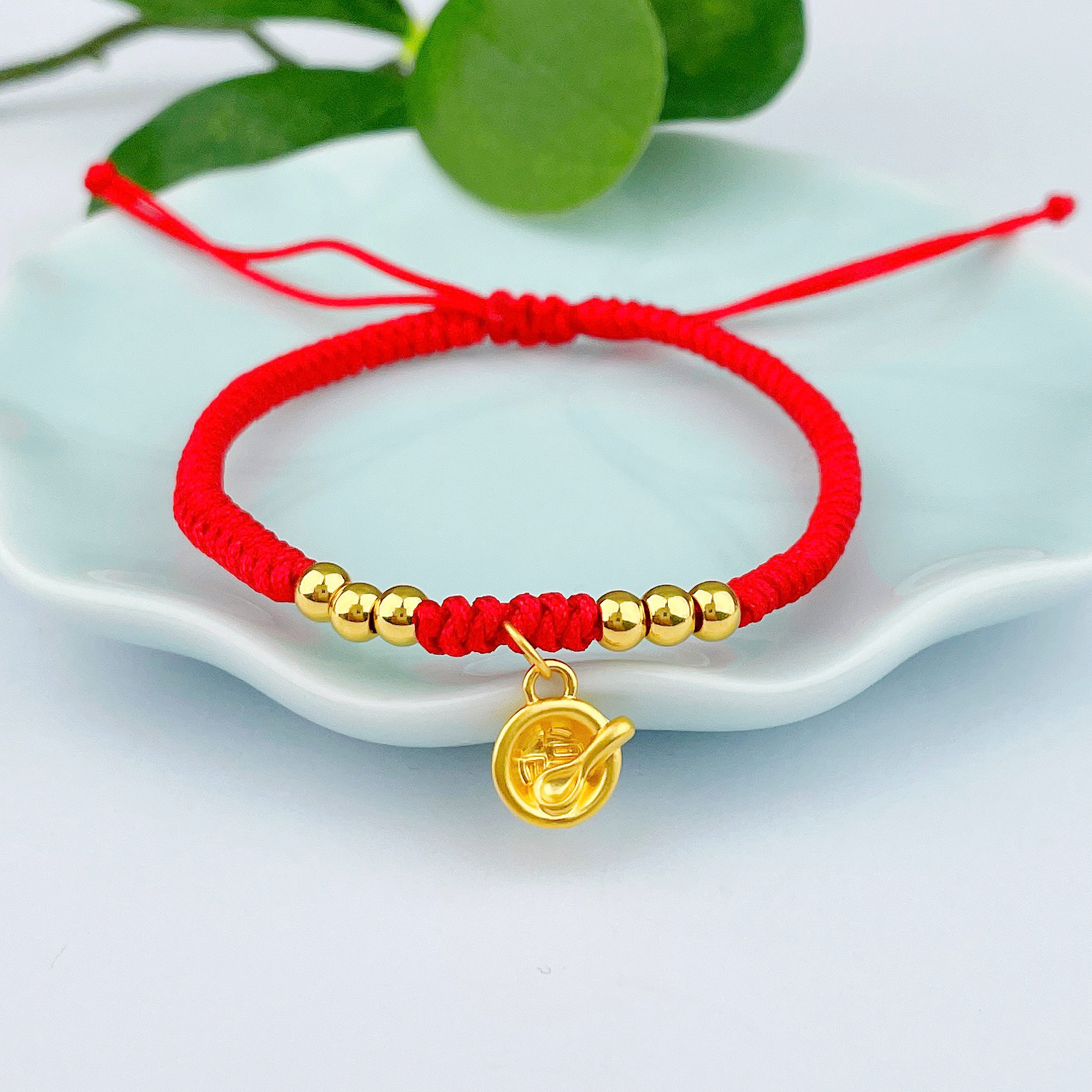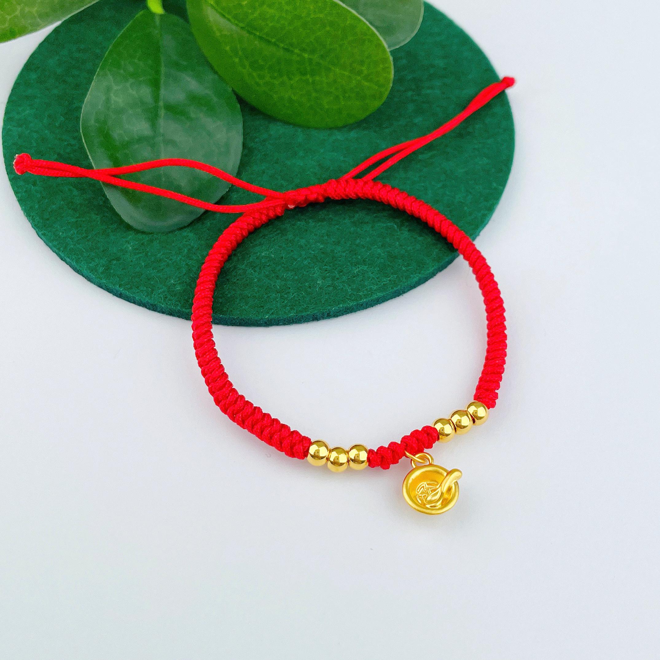 【限时7.5折】【定价黄金】足金 #儿童/宝宝 #六一儿童节、周岁礼推荐3D硬金金饭碗六六大顺红绳调节成品手串(宝宝、大人都适戴)(AA3DSC00210)(预售产品下单后不退款不退货不换货不补差价)