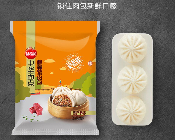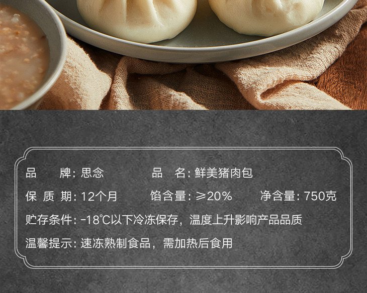 思念 中华面点 鲜美猪肉包 750g 25只 早餐 烧烤 包子