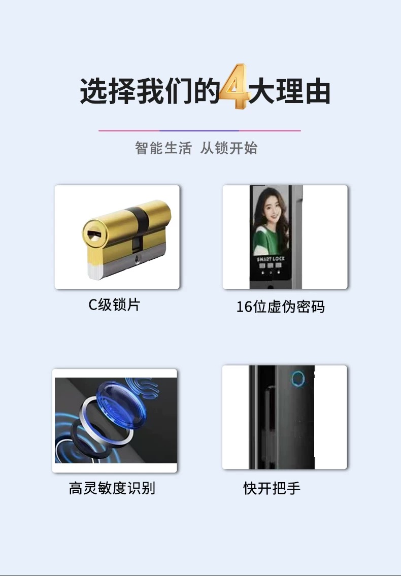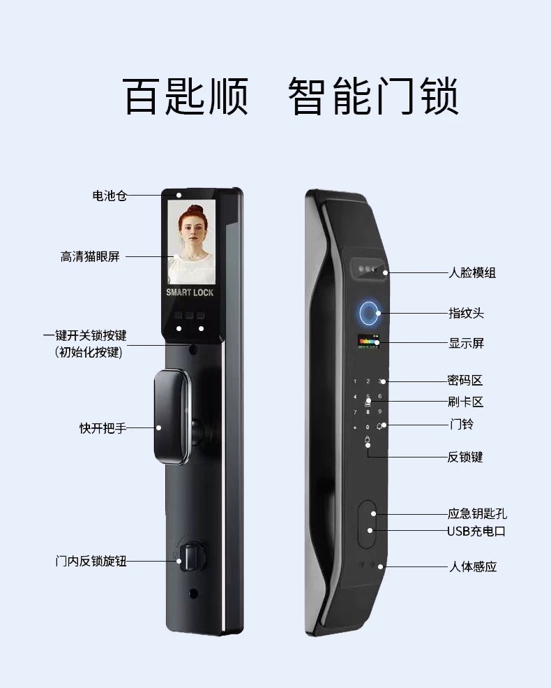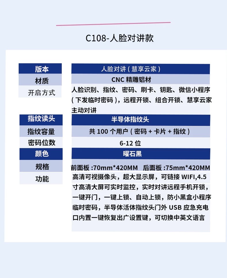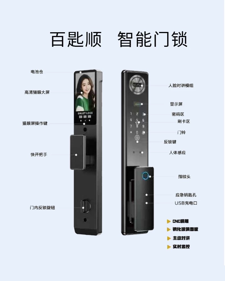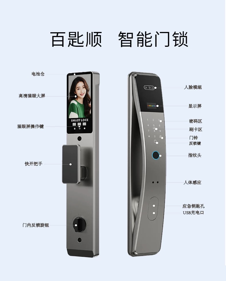 【分销】【免费上门安装】百匙顺智能锁 C108 四重解锁+高清可视对讲+远程对讲解锁+免费包安装 居家安全便捷一次拉满