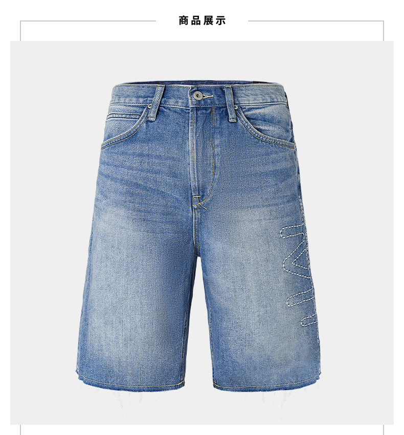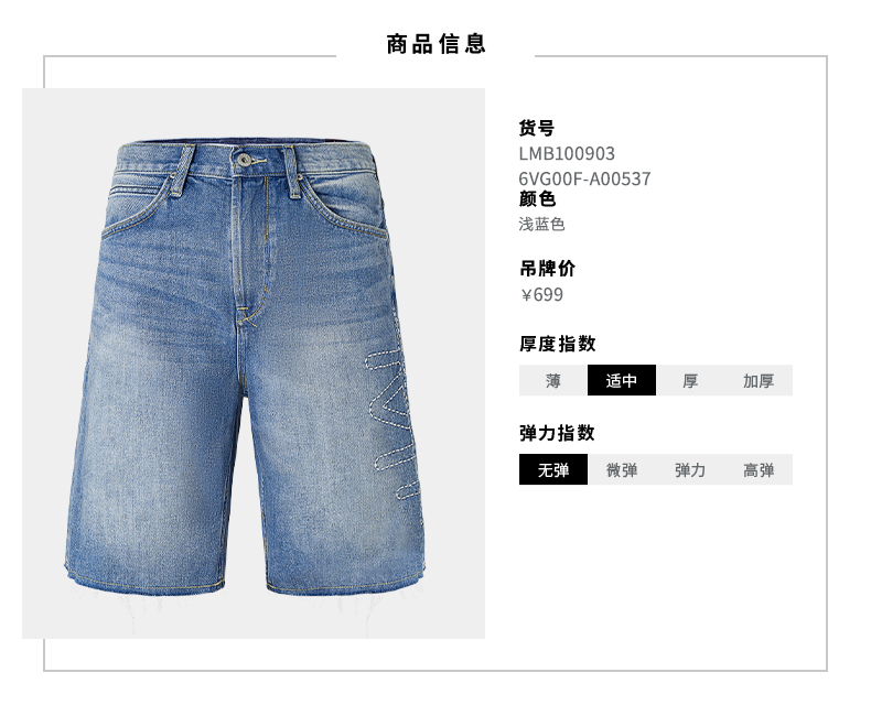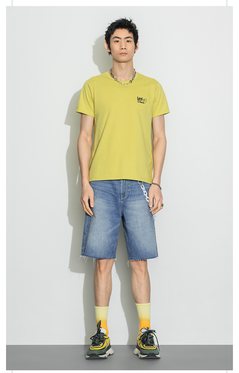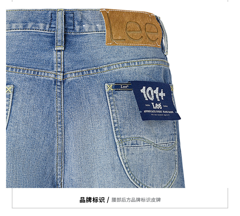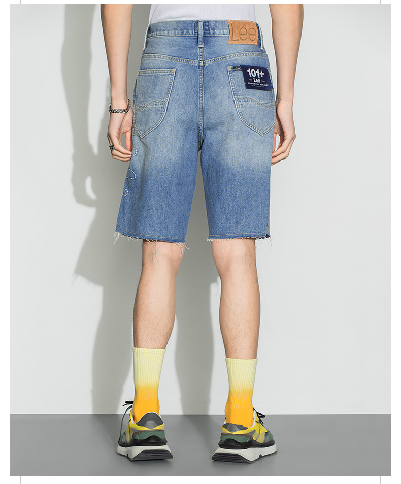 Lee商场同款22春夏新品101+宽松浅蓝男牛仔短裤LMB1009036VG-537