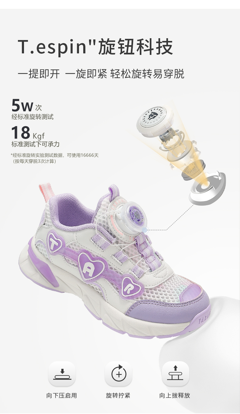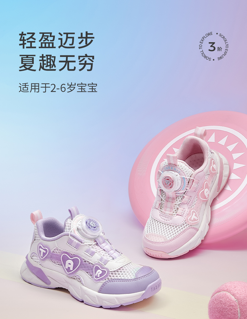 泰兰尼斯儿童运动鞋夏季新款舒适单网跑步鞋女童休闲鞋女宝跑步鞋 T01X5A7000