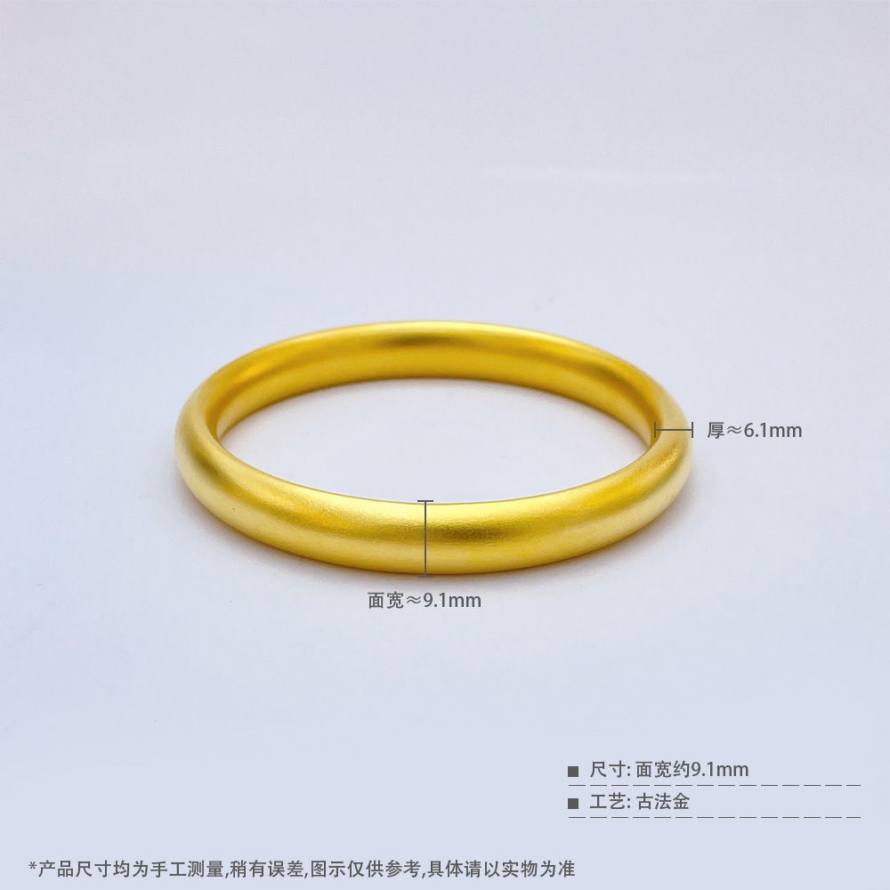 【限时克减150元】足金999.9 【油亮版本】古法传承半空心古法光圈古法素圈泥鳅背宽面光圈内平外弧手镯扁素圈固口古法手镯(AIGFSZ00054-6)(预售产品下单后不退款不退货不换货不补差价)