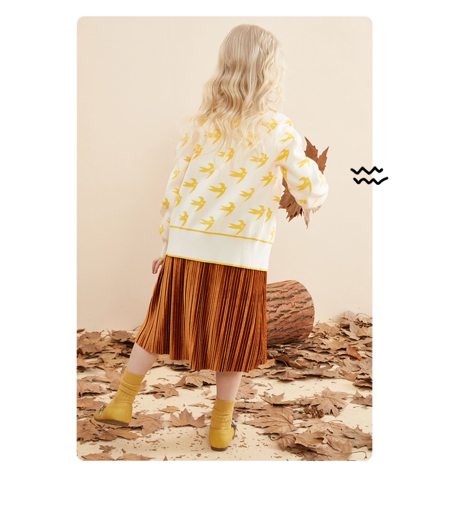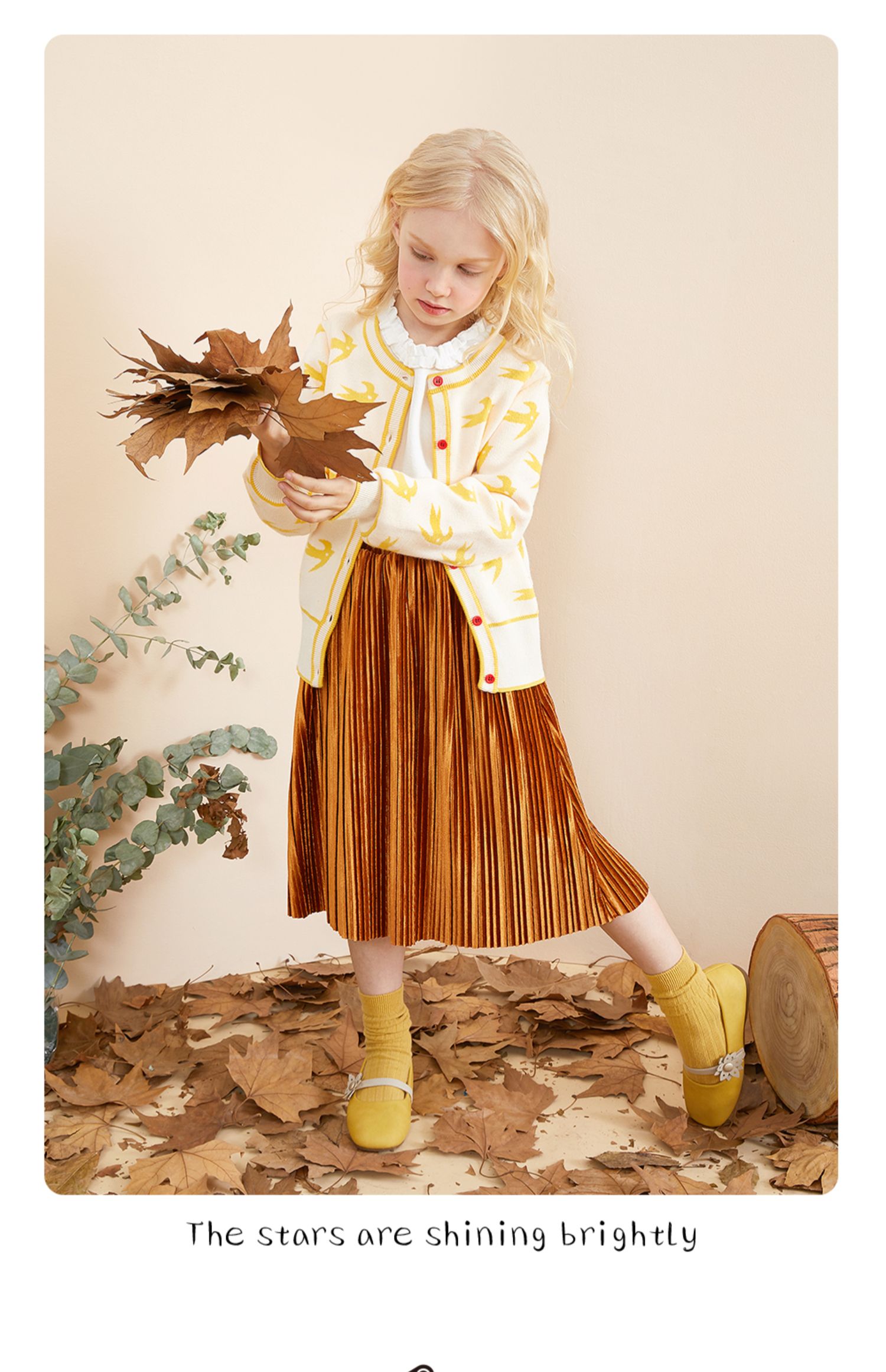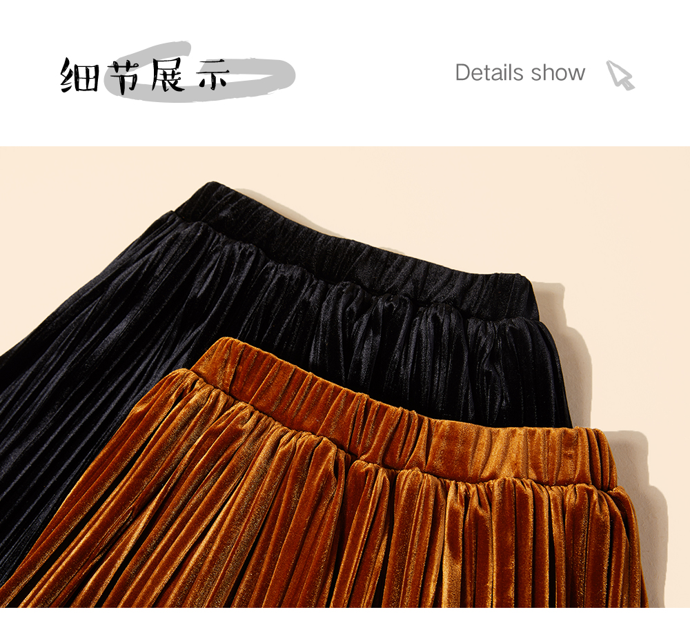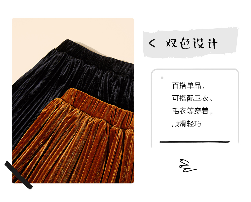 littletime童装丝绒百褶裙 2022冬新款文艺简约百褶中长保暖舒适
