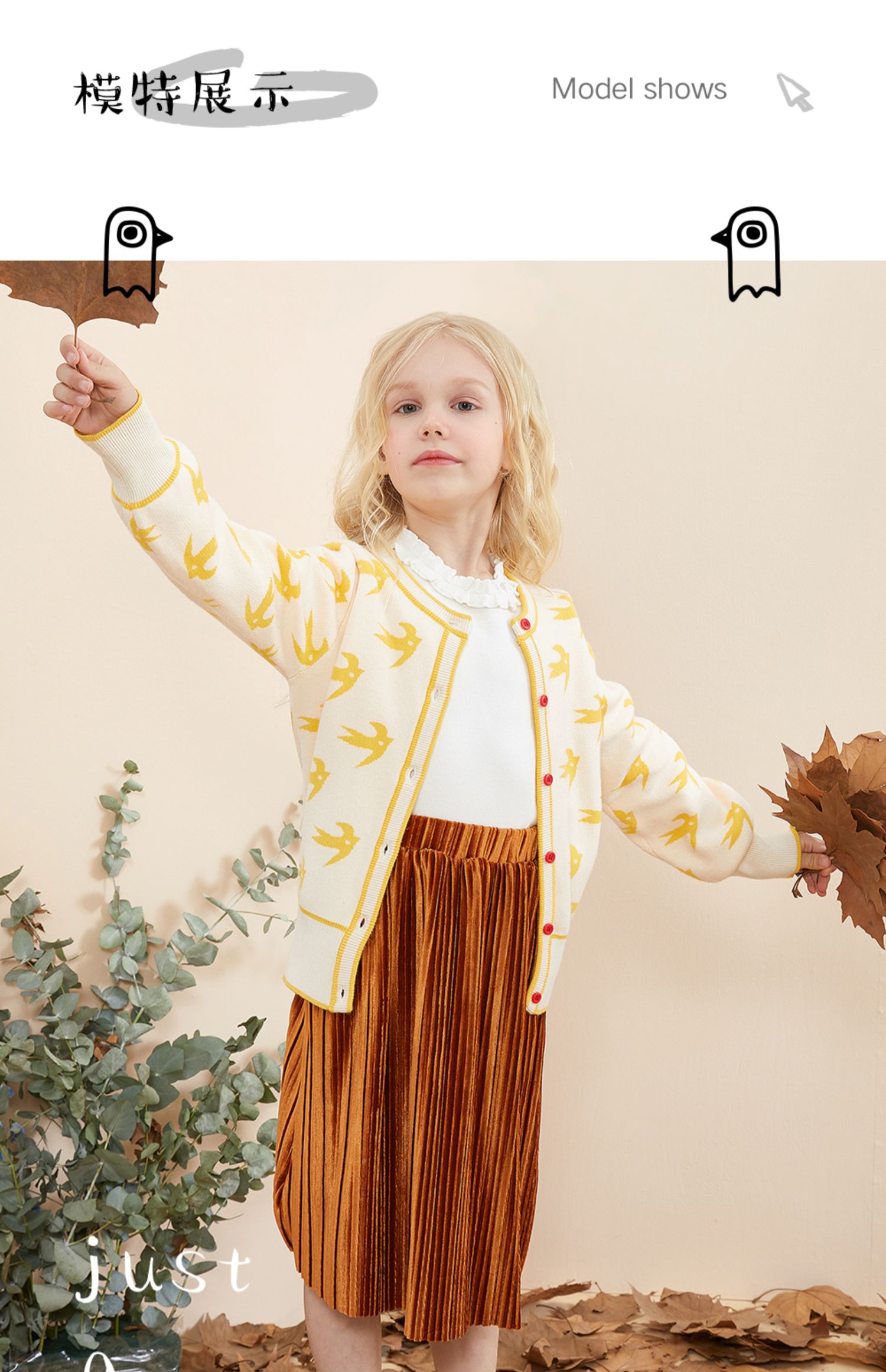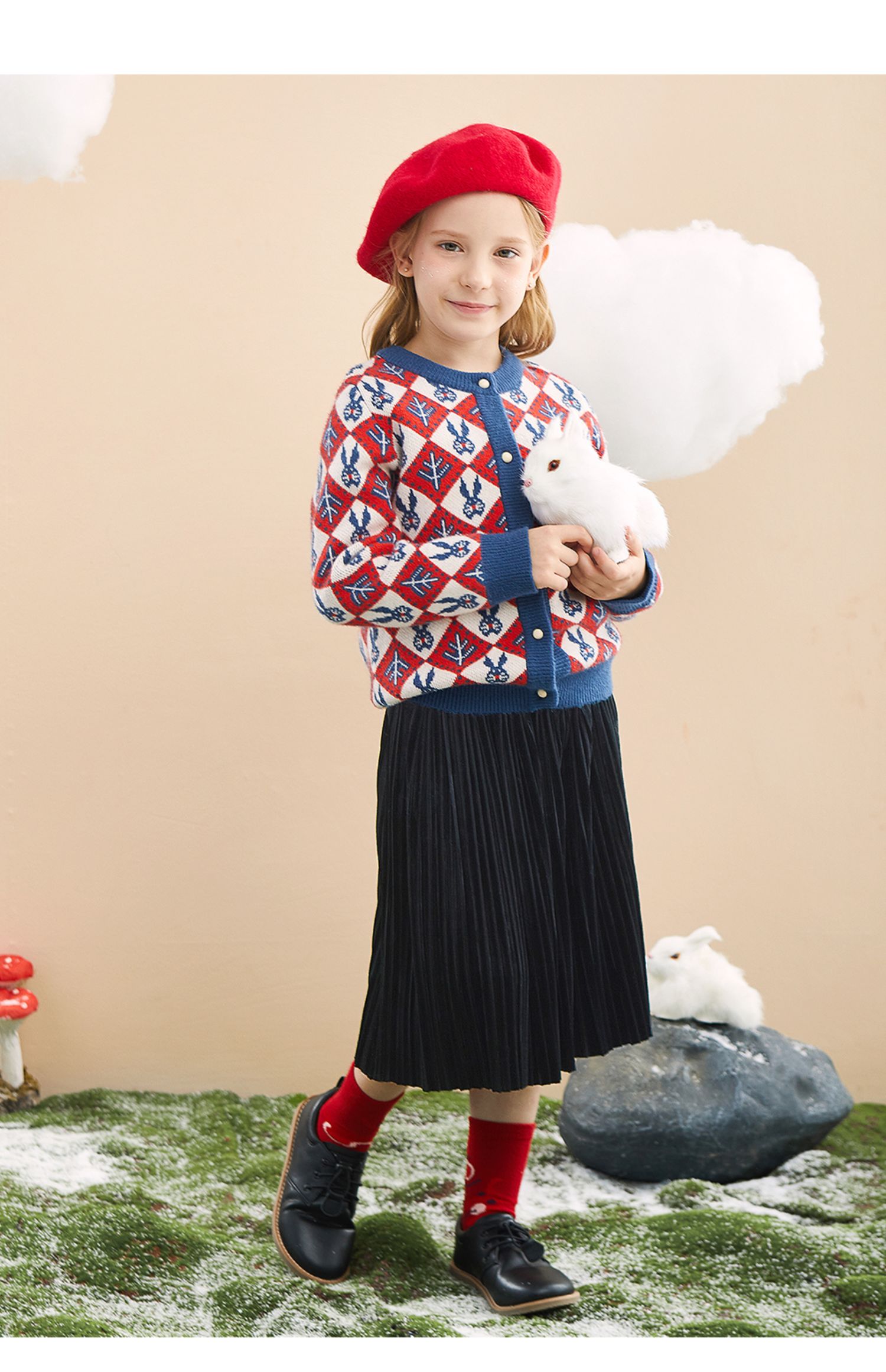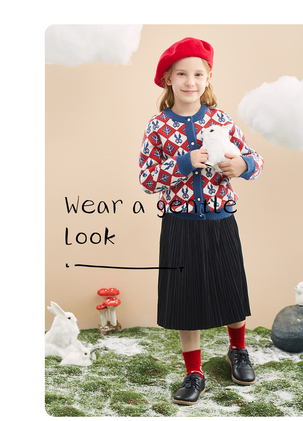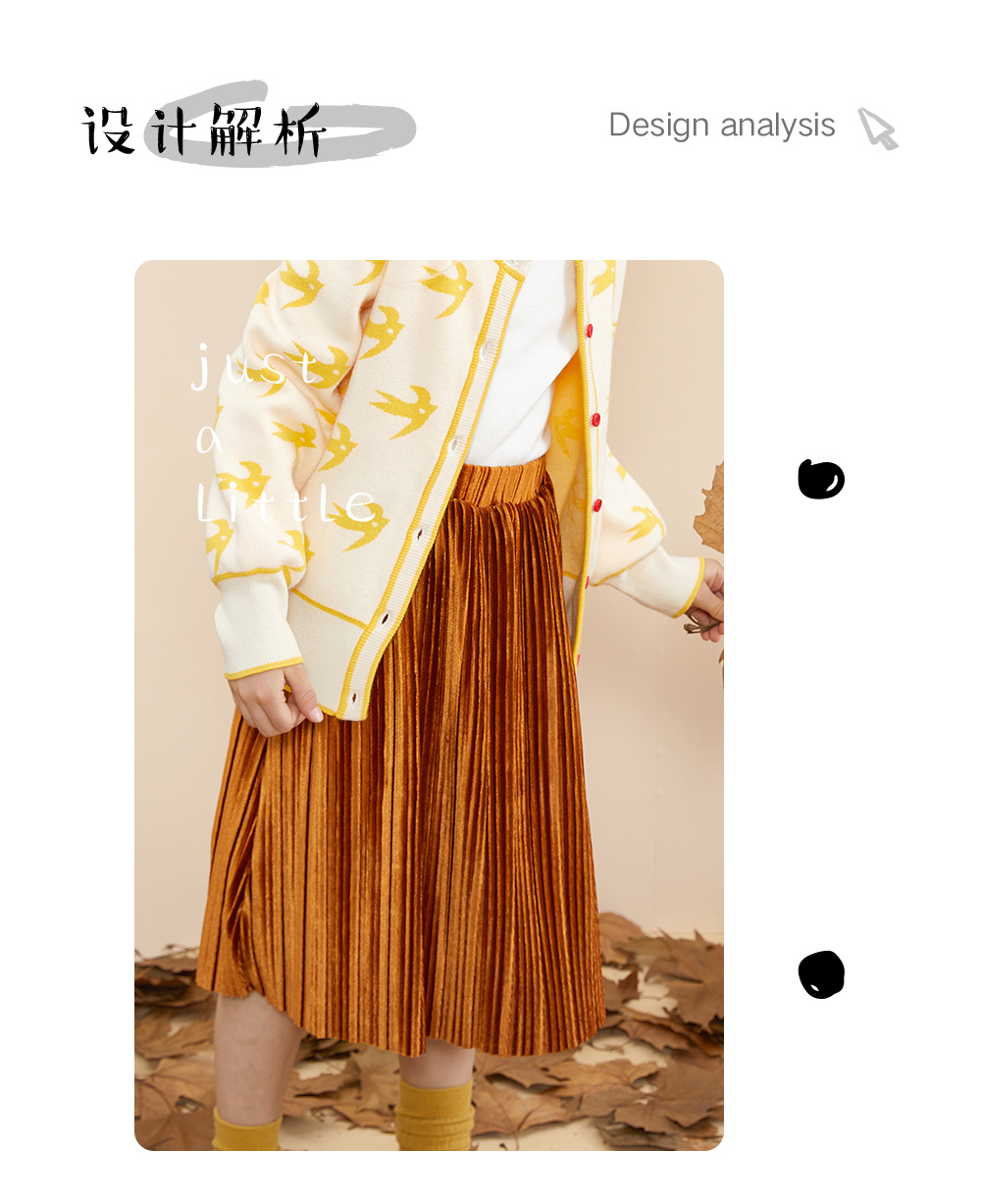 littletime童装丝绒百褶裙 2022冬新款文艺简约百褶中长保暖舒适