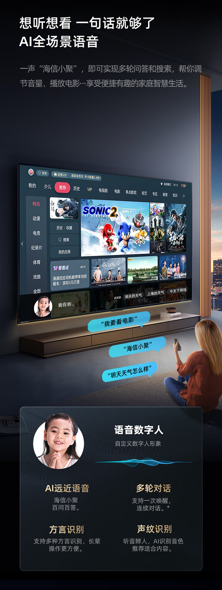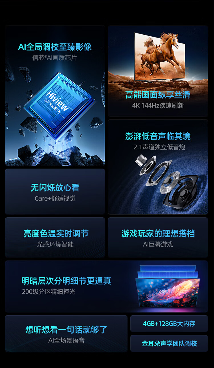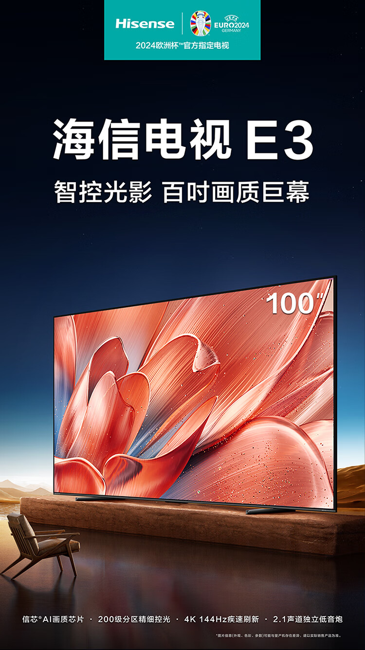 海信电视100E3N Pro 100英寸 二百级分区控光 信芯AI画质芯片 4K144Hz高刷 智慧屏液晶平板巨幕