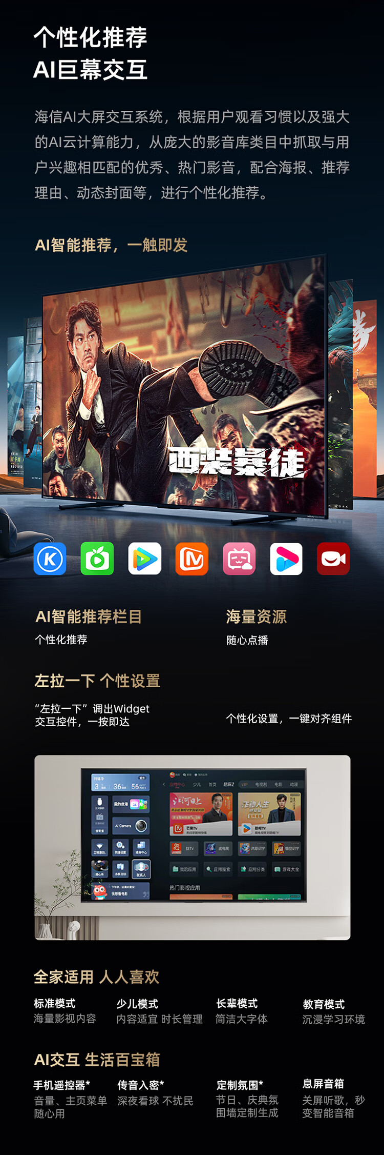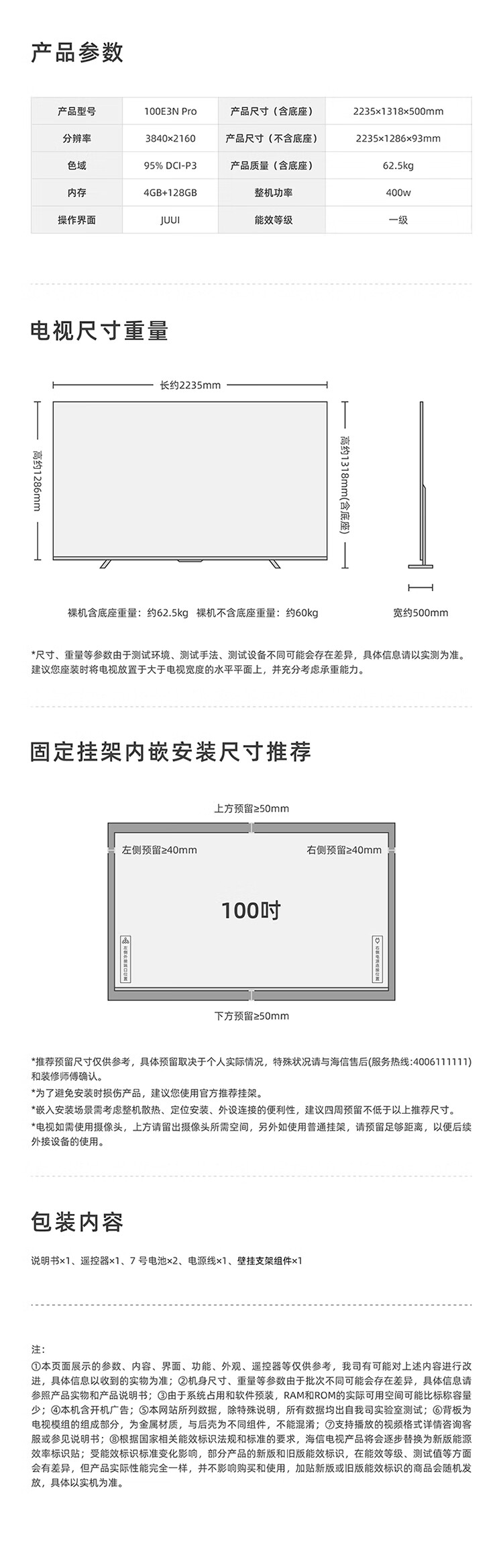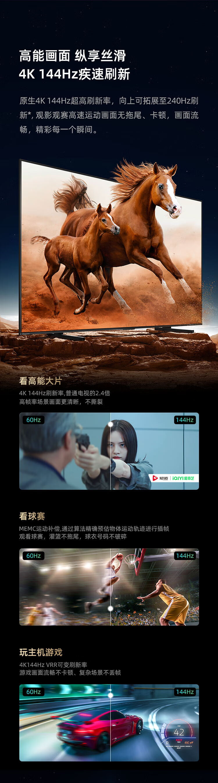 海信电视100E3N Pro 100英寸 二百级分区控光 信芯AI画质芯片 4K144Hz高刷 智慧屏液晶平板巨幕