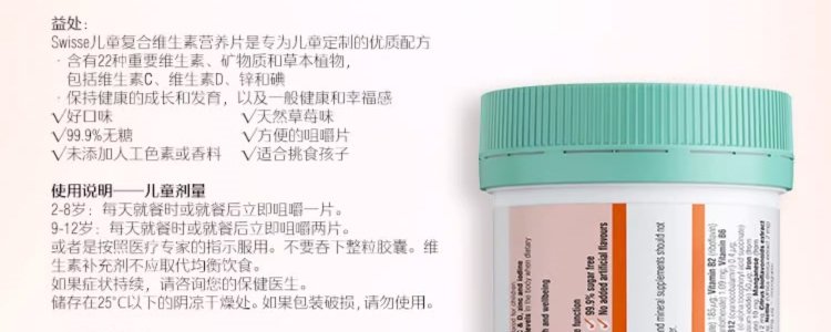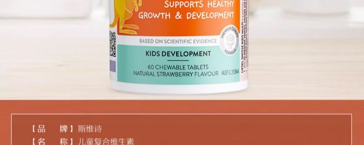 【保税】澳洲 Swisse儿童复合维生素咀嚼片 小超人活力片 60片 适合2岁-12岁儿童 天然草莓味 宝宝更爱吃 不含香精或甜味剂 宝宝牙齿无负担