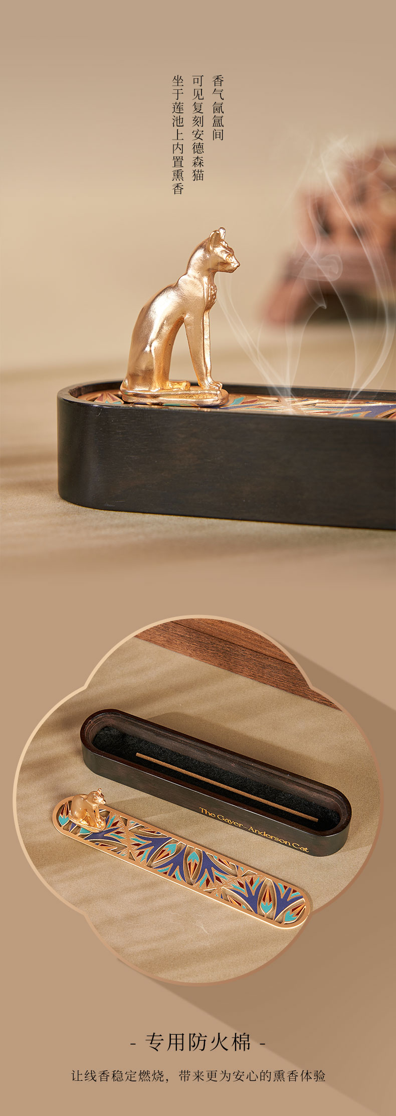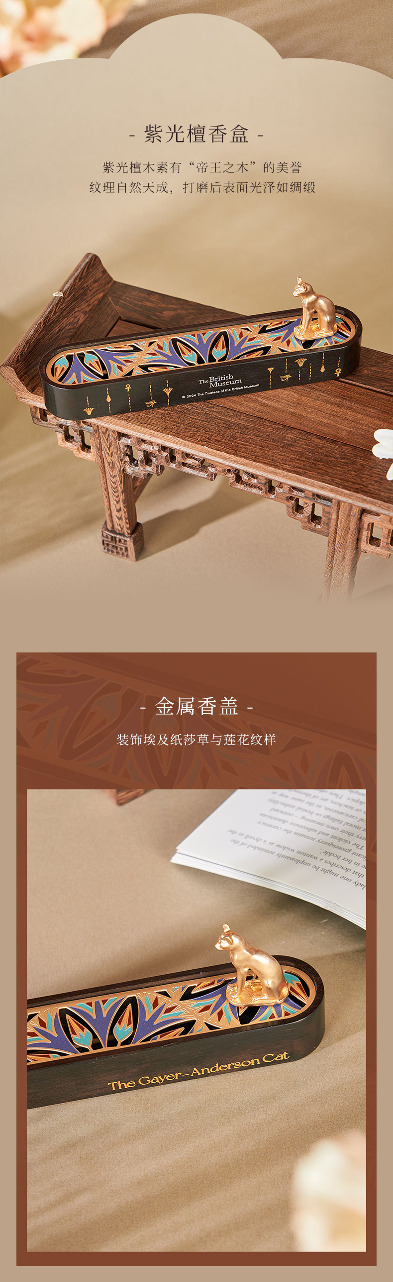 大英博物馆 盖亚·安德森猫系列 紫光檀香盒摆件