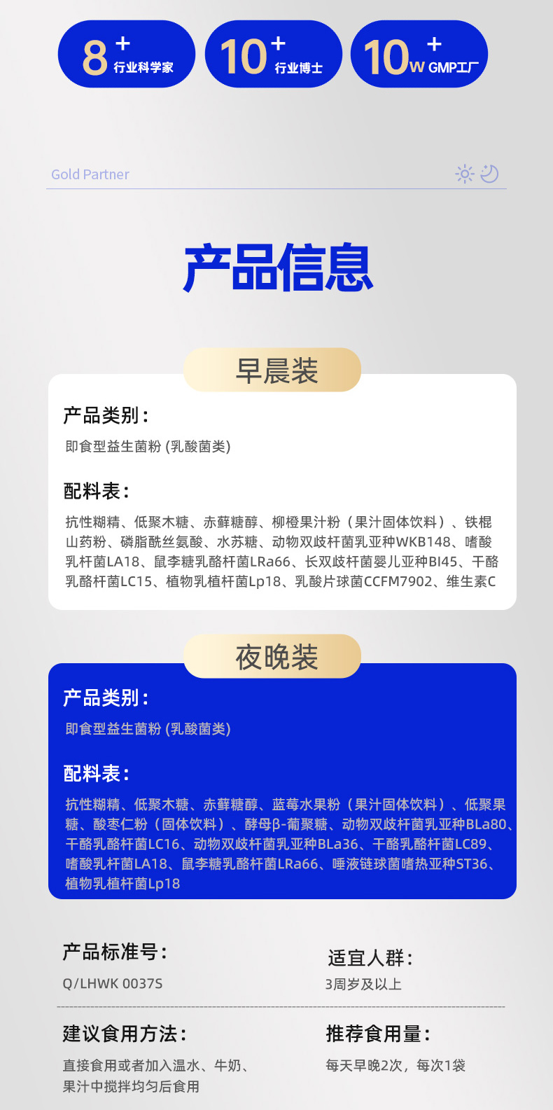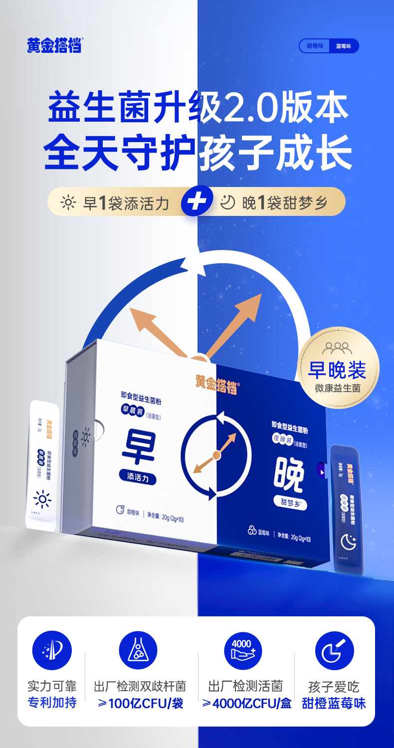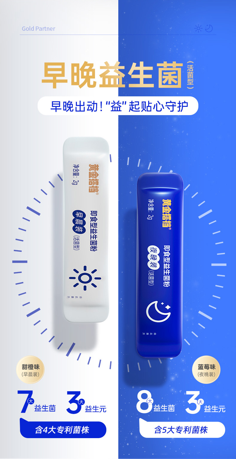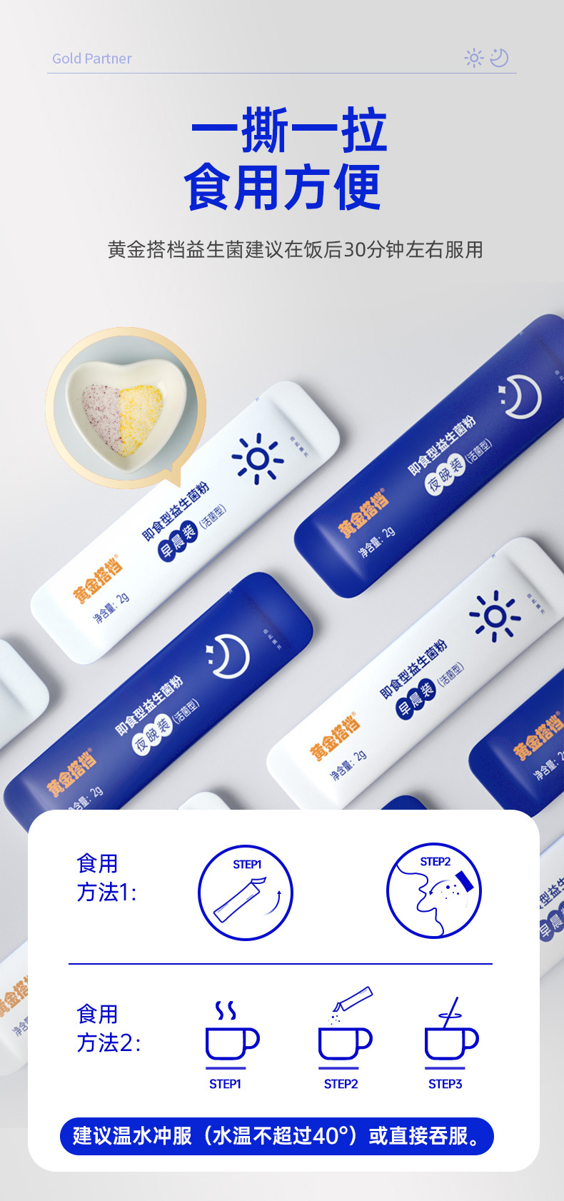 【拍1发3】黄金搭档早晚益生菌粉儿童肠胃肠道活菌成人通用冻干粉 20条/袋