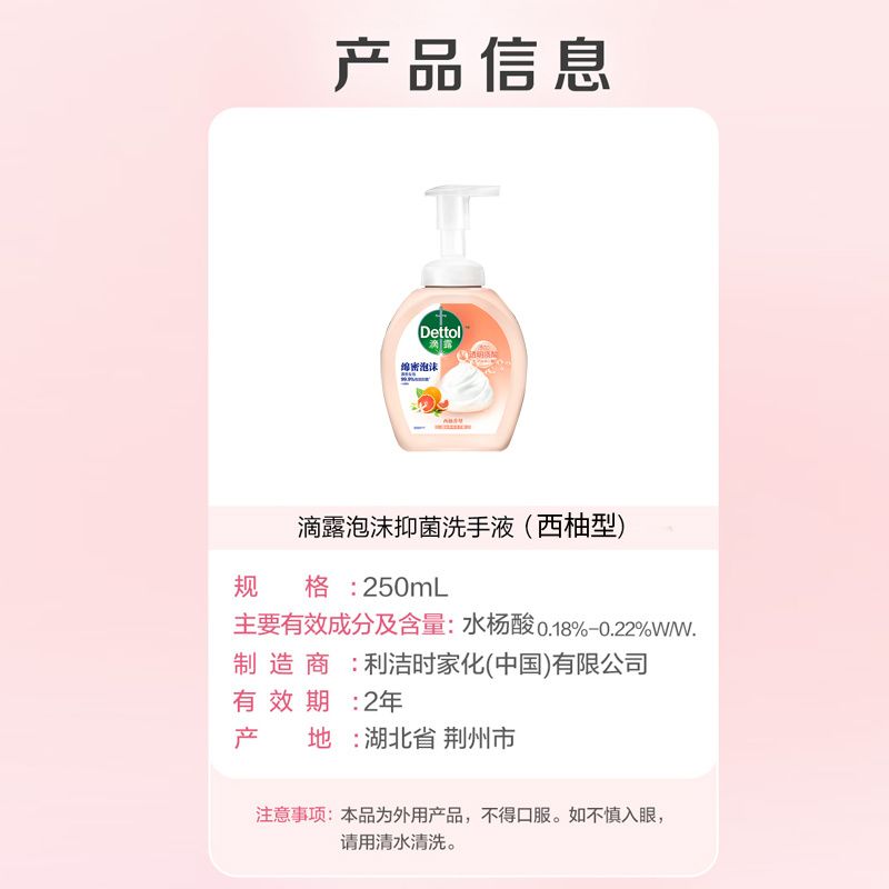 滴露Dettol玻尿酸泡沫花香/西柚香/青柠洗手液