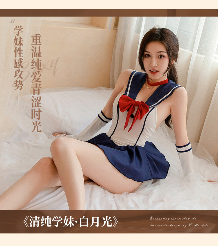 霏慕 清纯学妹校园连衣裙套装3905 情趣内衣性感jk纯欲风学院制服免脱约会战袍床上火辣激情3905 水手月亮白 均码