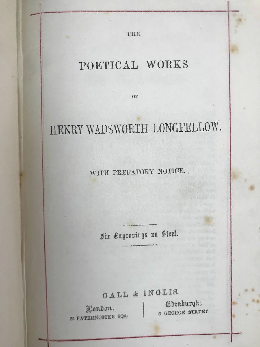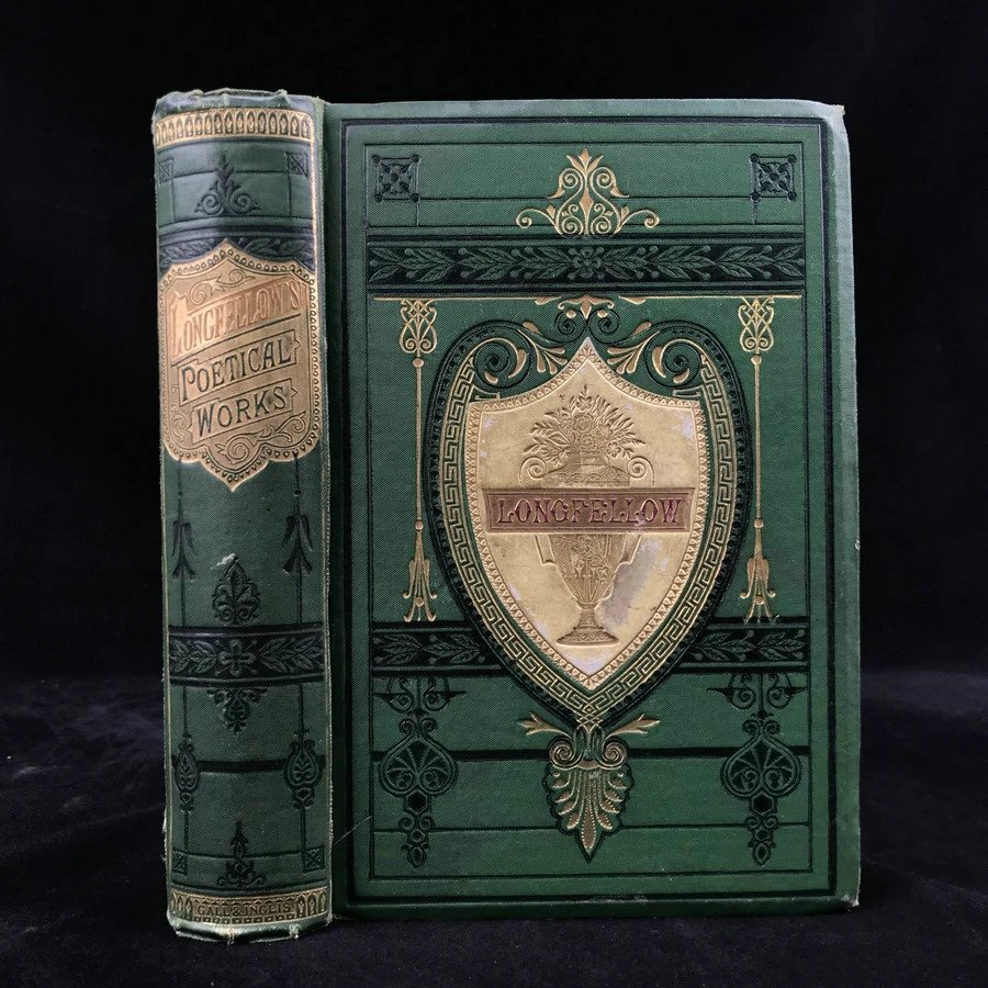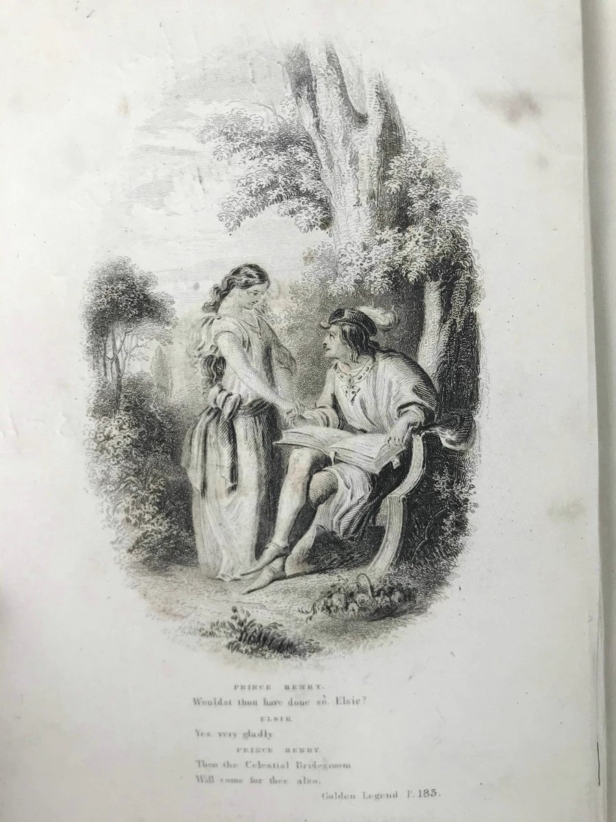 约19世纪后期 朗费罗诗集 6幅钢版画插图 漆布精装32开