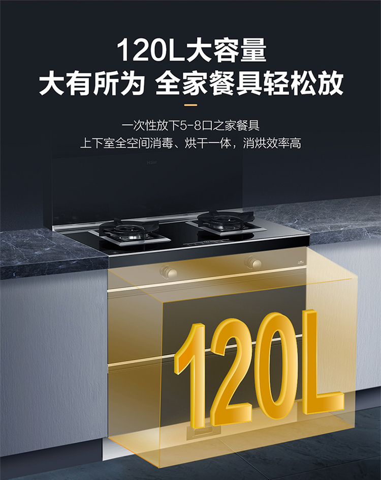 海尔(Haier)集成灶消毒柜 集成灶一体式 双腔油烟机精准吸烟灶联动 医疗级消毒柜 京馨系列顶超薄近吸DQ1X