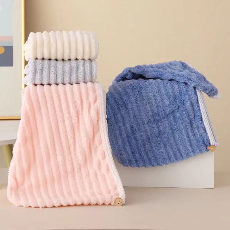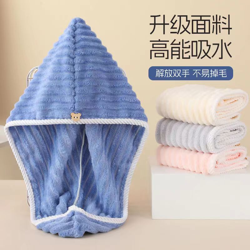 【解放双手! 不易掉毛】新款波浪纹干发帽毛巾加厚柔软强力吸水珊瑚绒可爱速干网红包头巾。ry