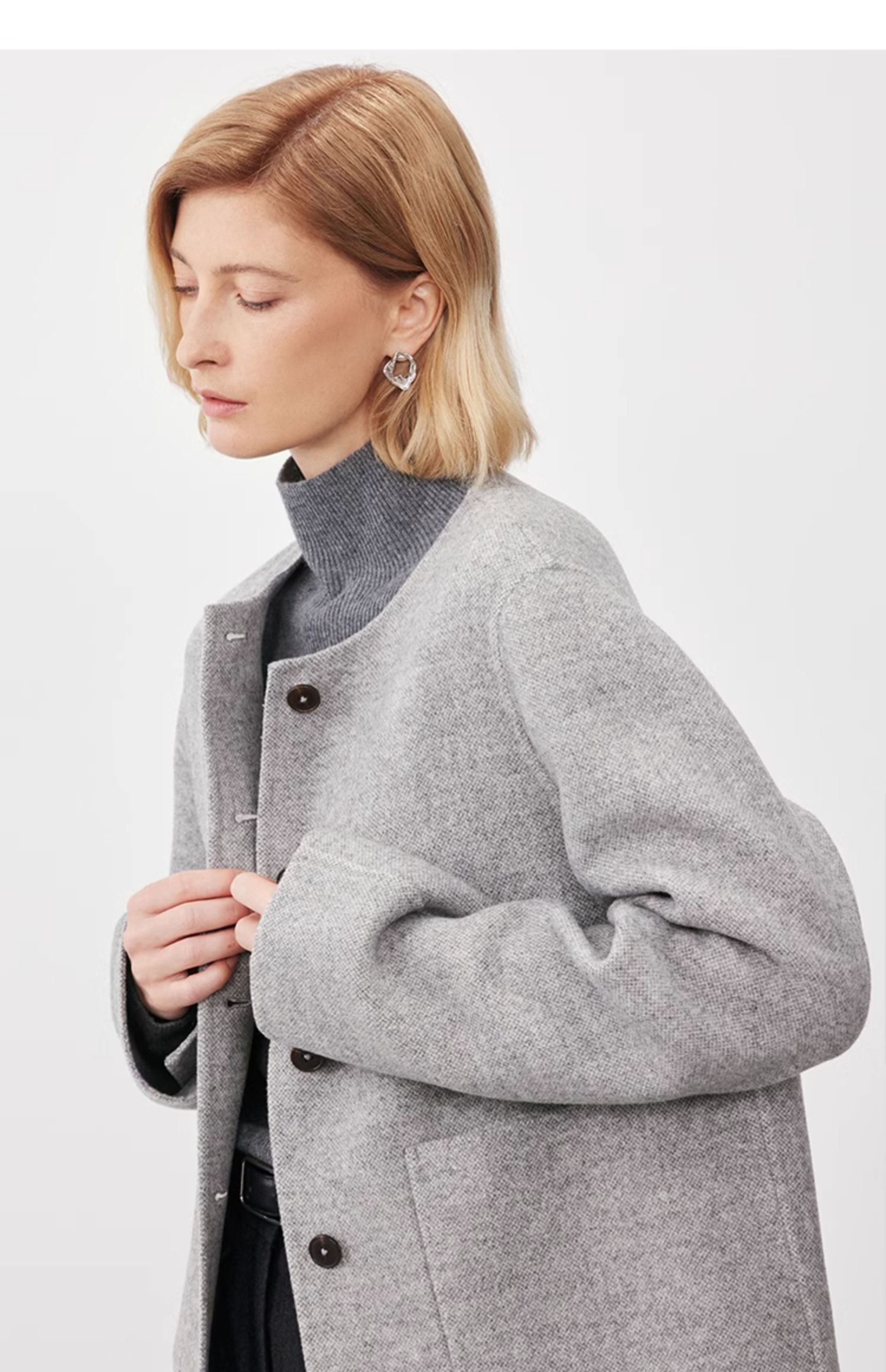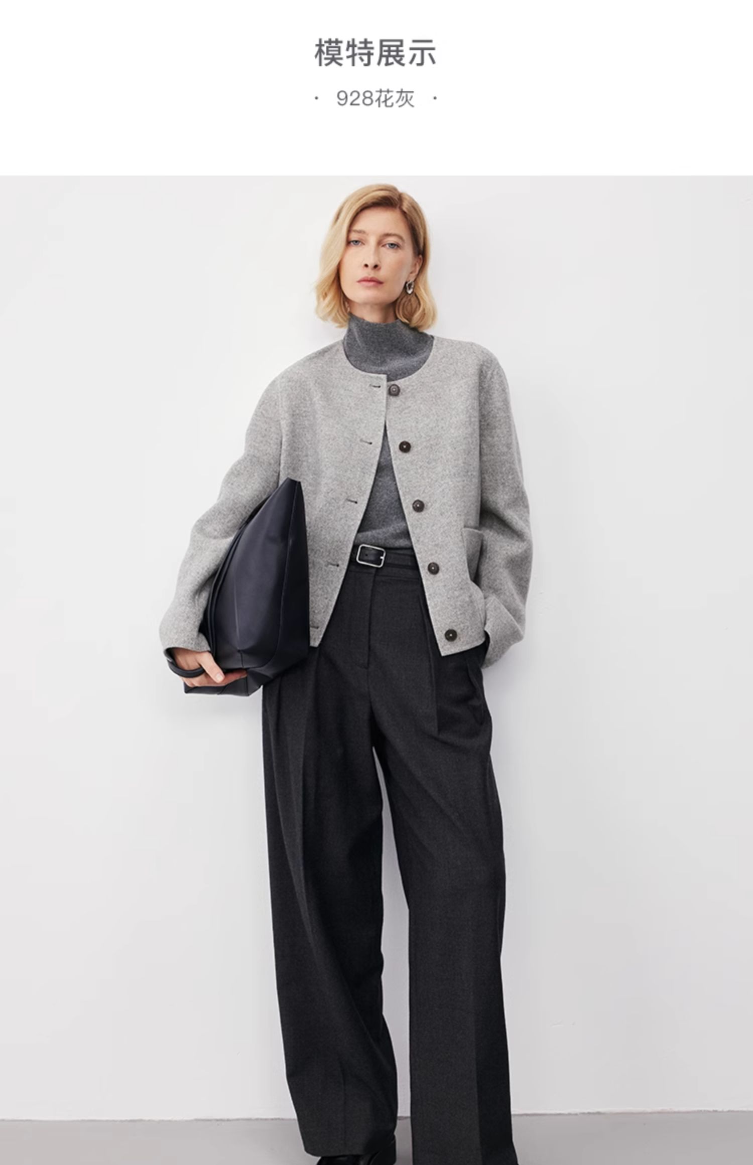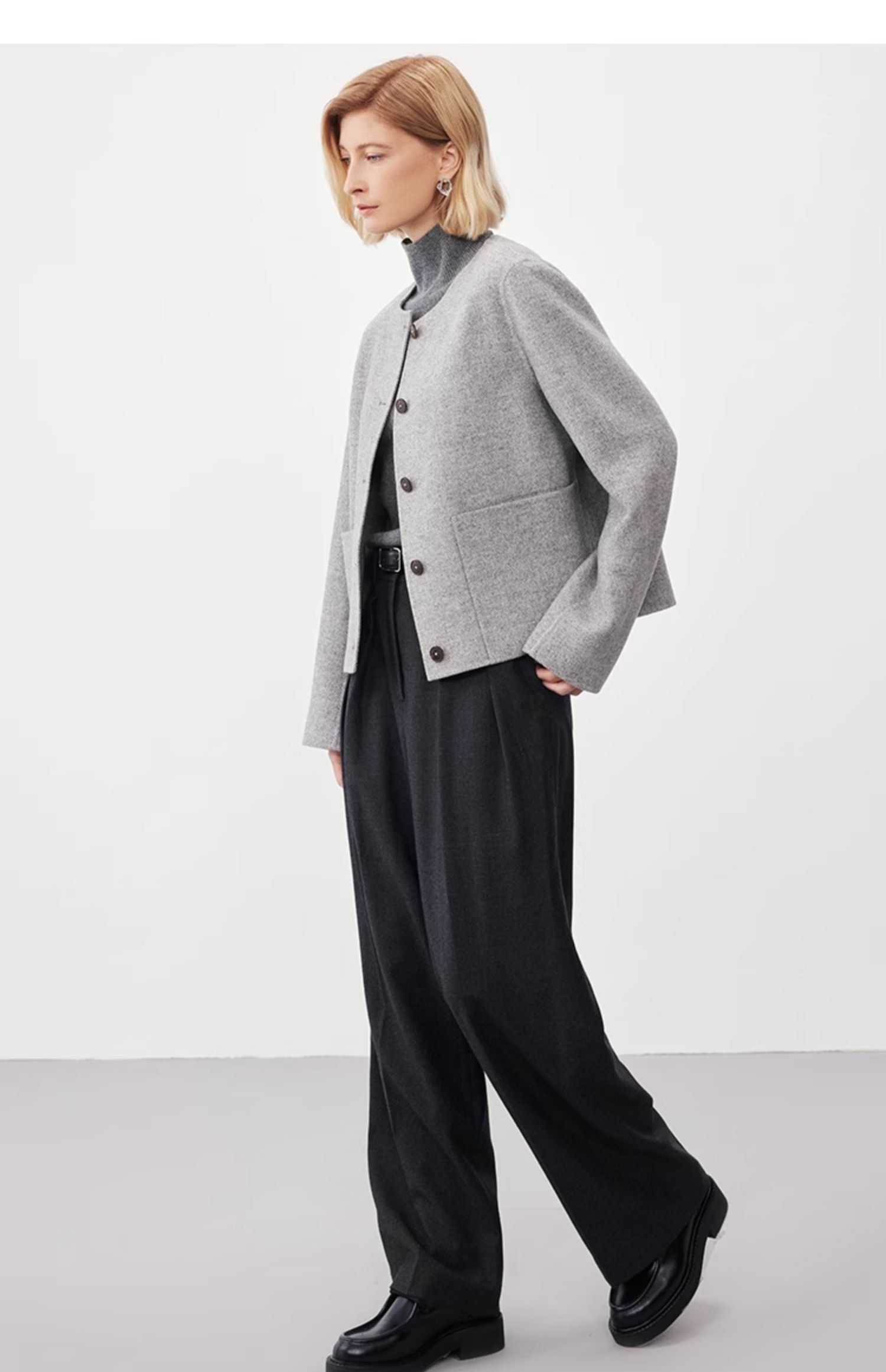 Marc O'Polo/MOP2024冬季新款绵羊毛短款小香风双面呢夹克女外套