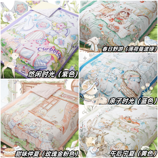 【颜色】亲子时光(蓝色)、春日野游(薄荷曼波绿色)、甜味仲夏(玫瑰金粉色)、午后宁夏(黄色)、休闲时光(紫色)