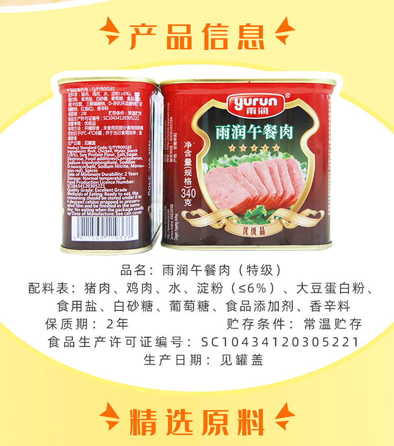 雨润 精品火锅午餐肉罐头 340g