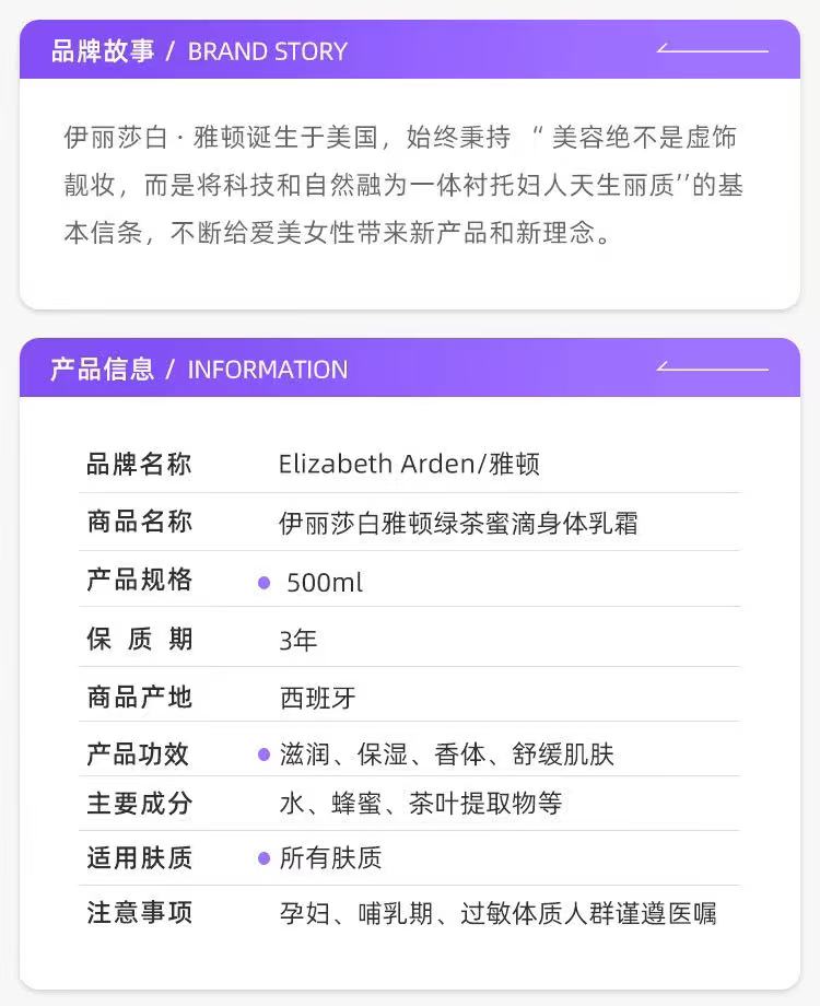 【正品保证】千人加购500ml伊丽莎白雅顿身体乳绿茶蜜滴身体霜滋润保湿补水持久留香