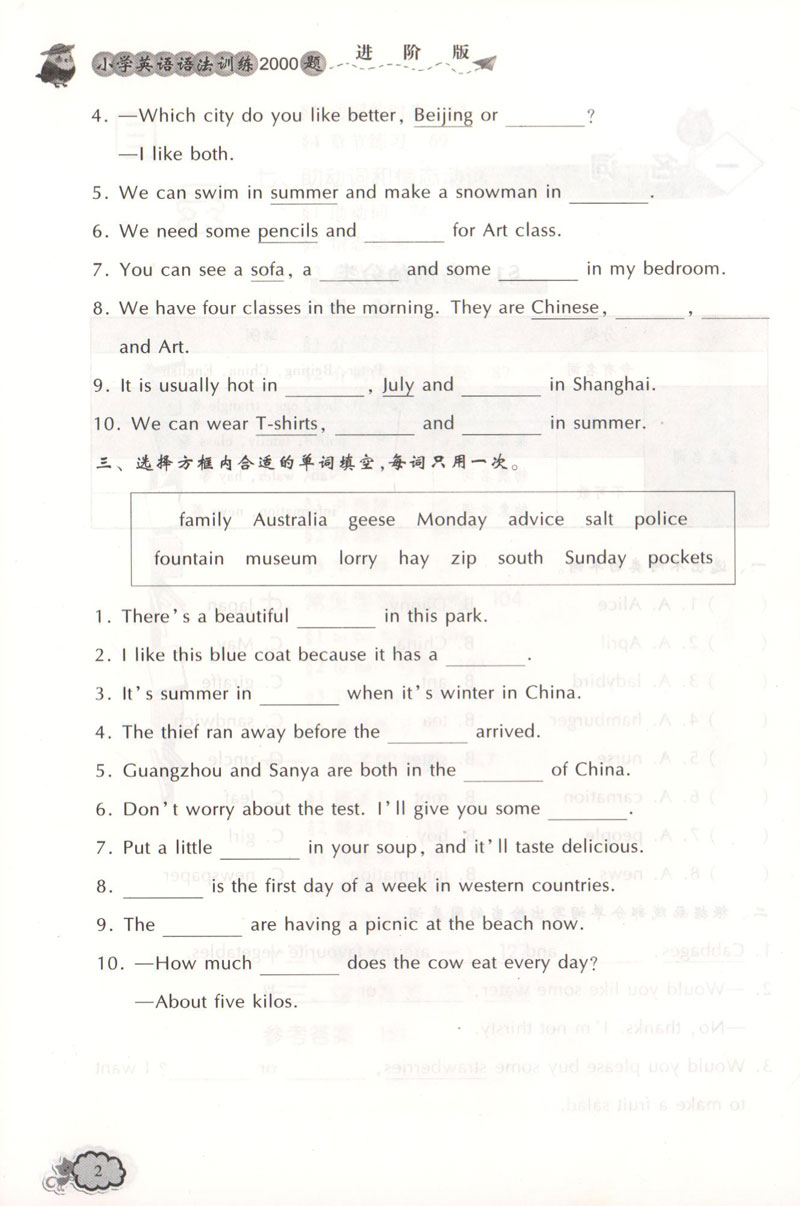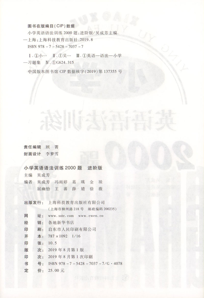 小学英语语法训练2000题 进阶版 附参考答案 英语语法 语法题型练习 小学英语语法学习参考工具书 上海科技教育出版社