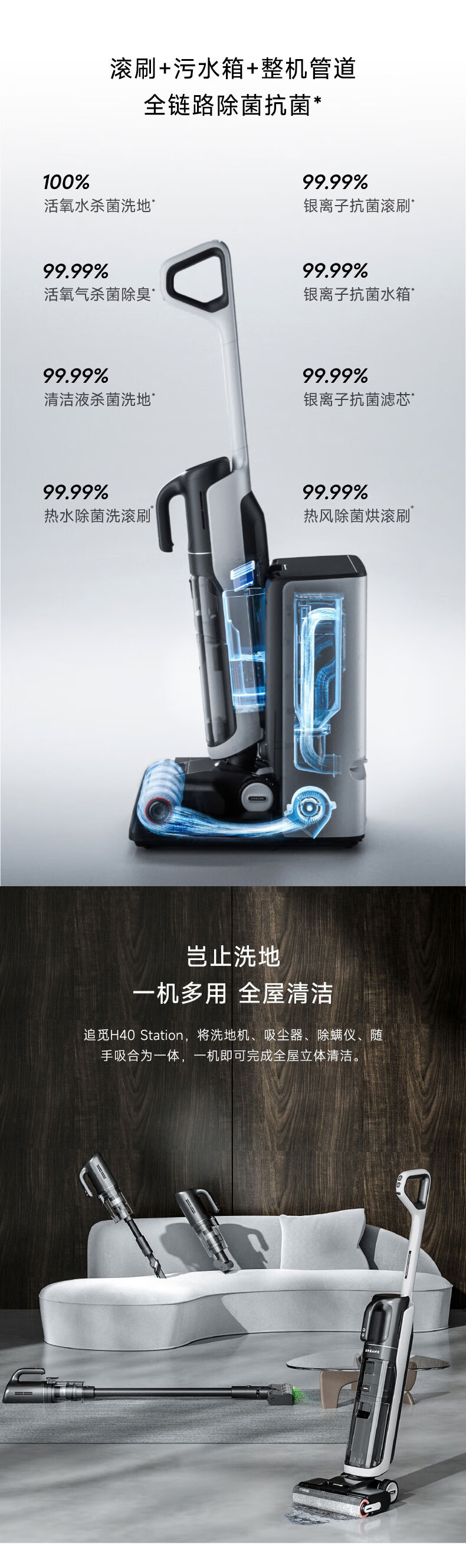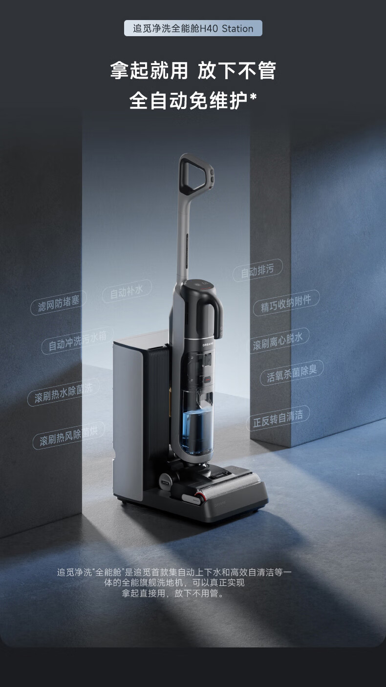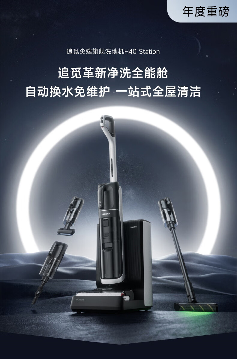 追觅H40 Station无线智能家用热水洗地机高温速干双贴边吸拖洗烘一体扫地机