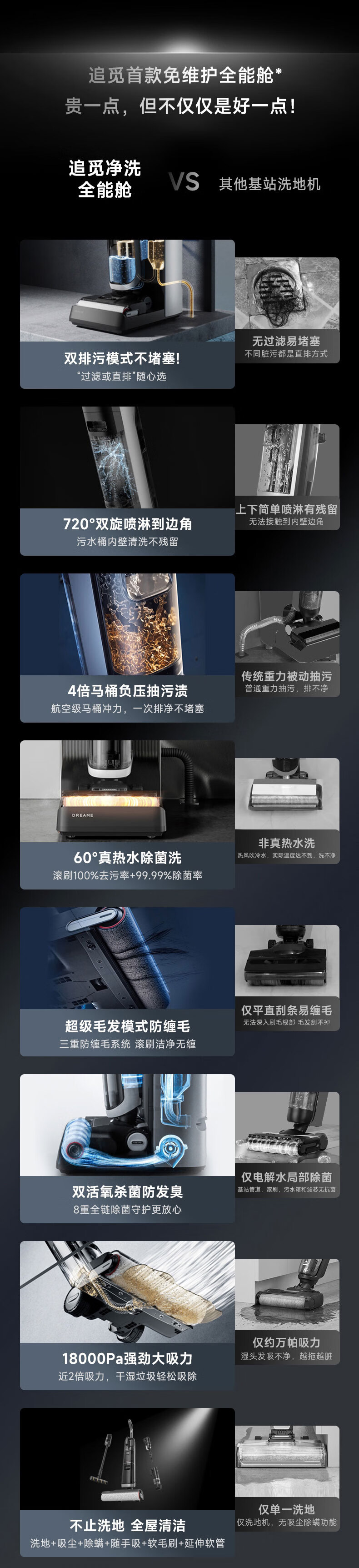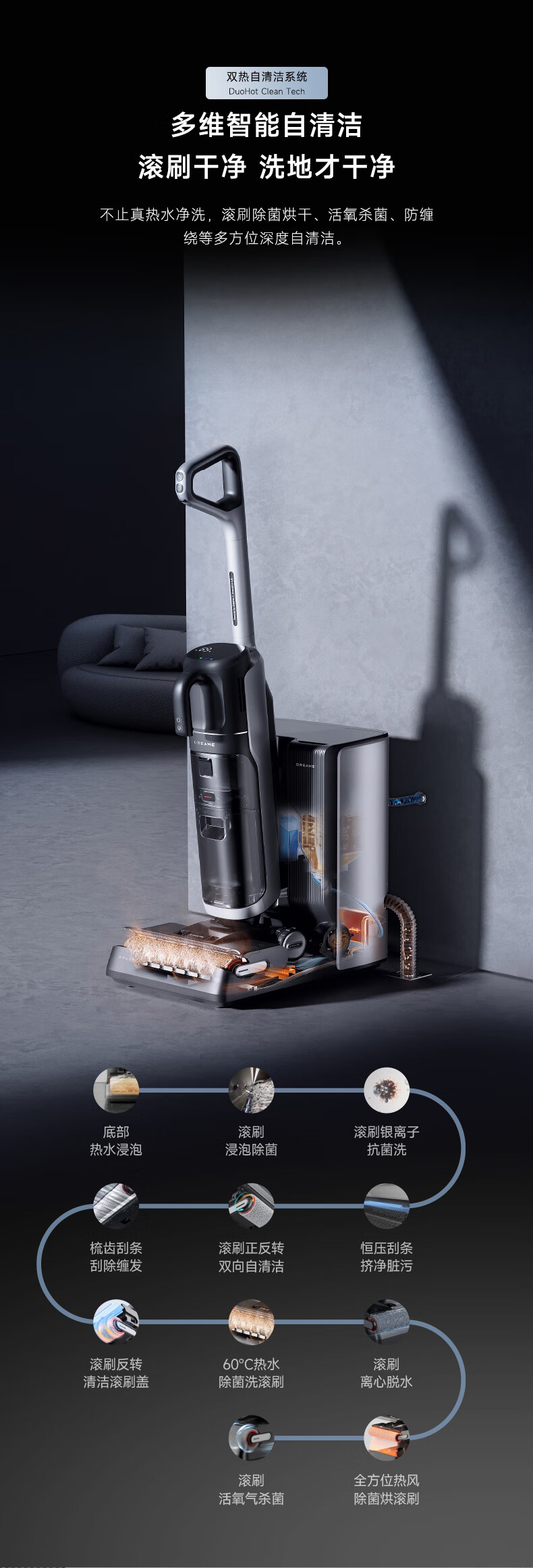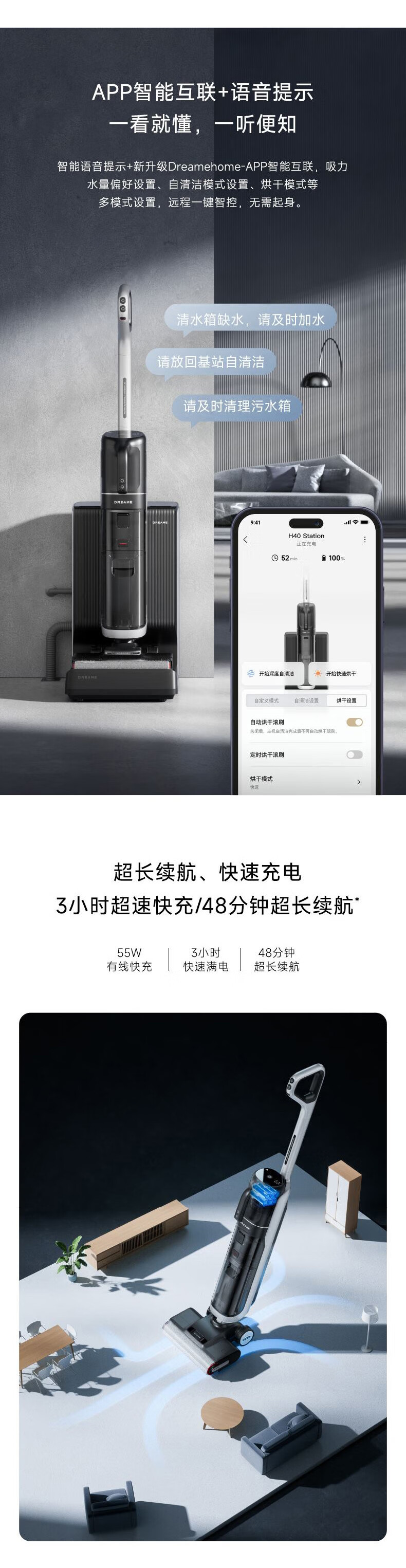 追觅H40 Station无线智能家用热水洗地机高温速干双贴边吸拖洗烘一体扫地机