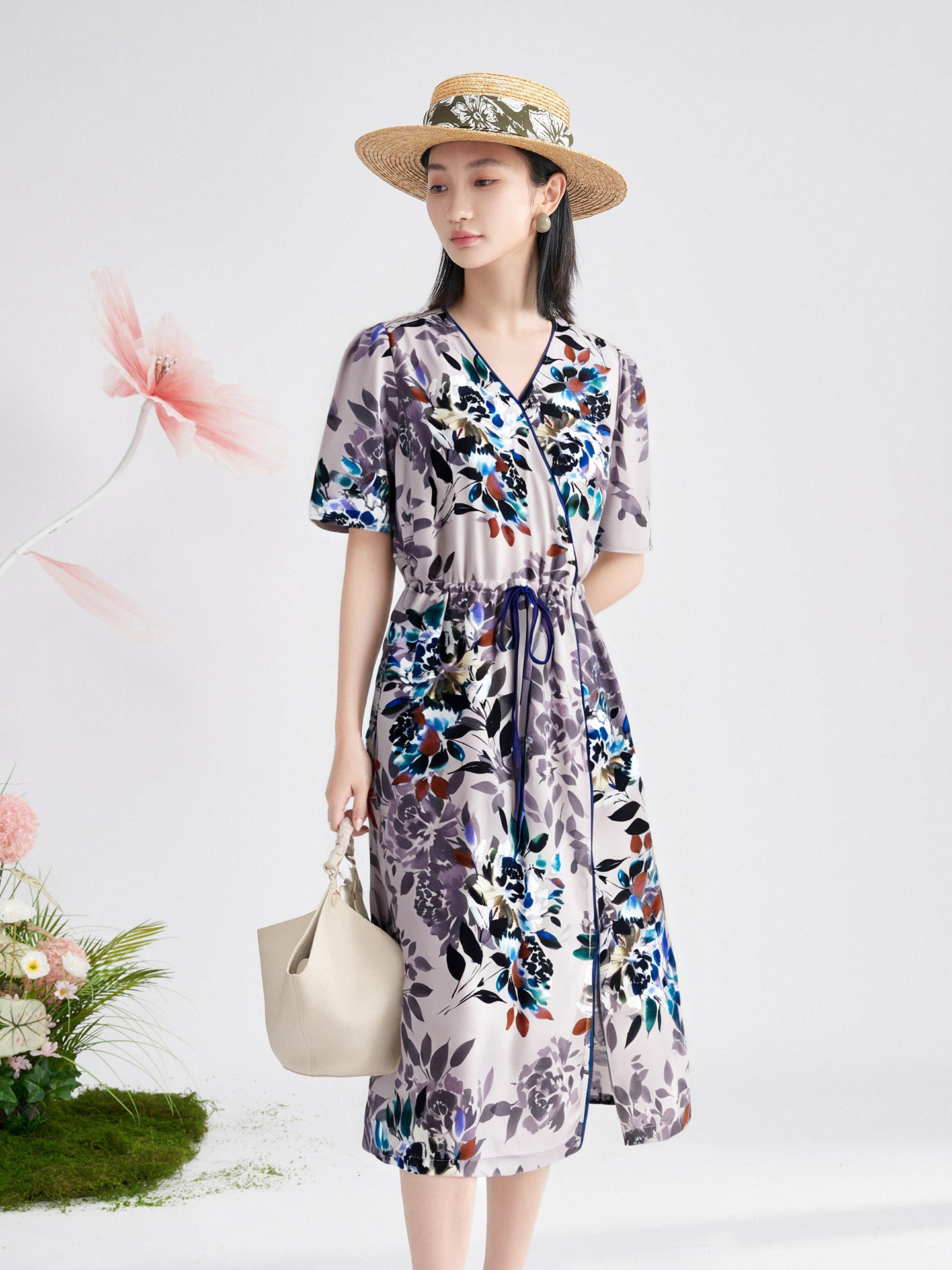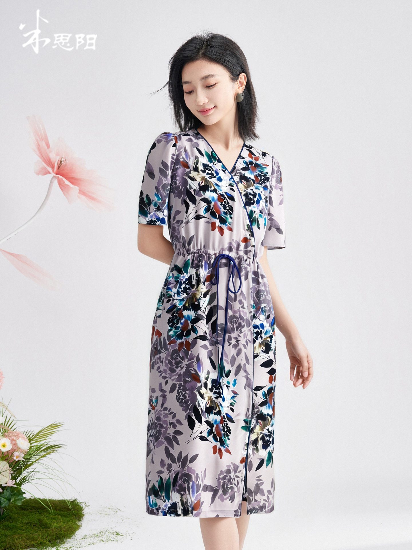 剩S/M/L/XL 米思阳2025年夏季新品法式显瘦气质V领独特印花连衣裙3686