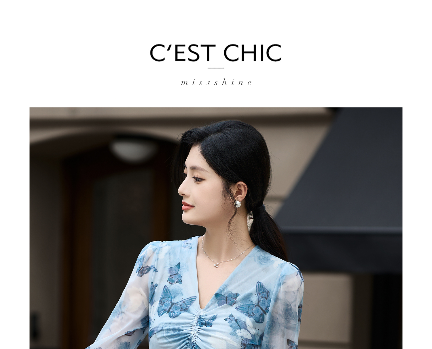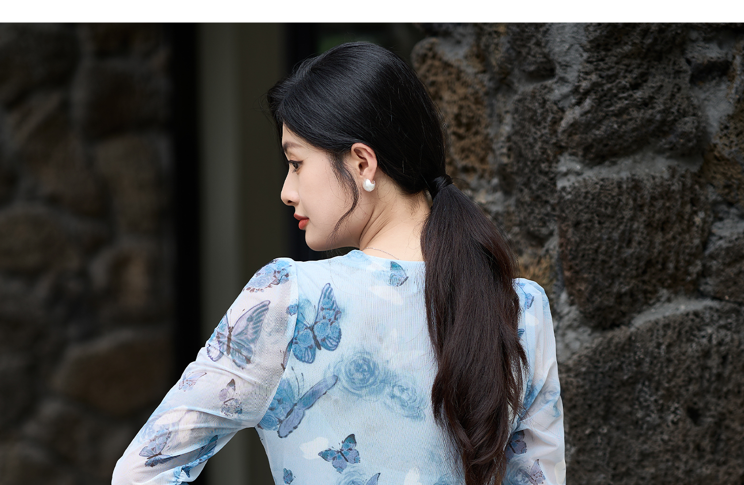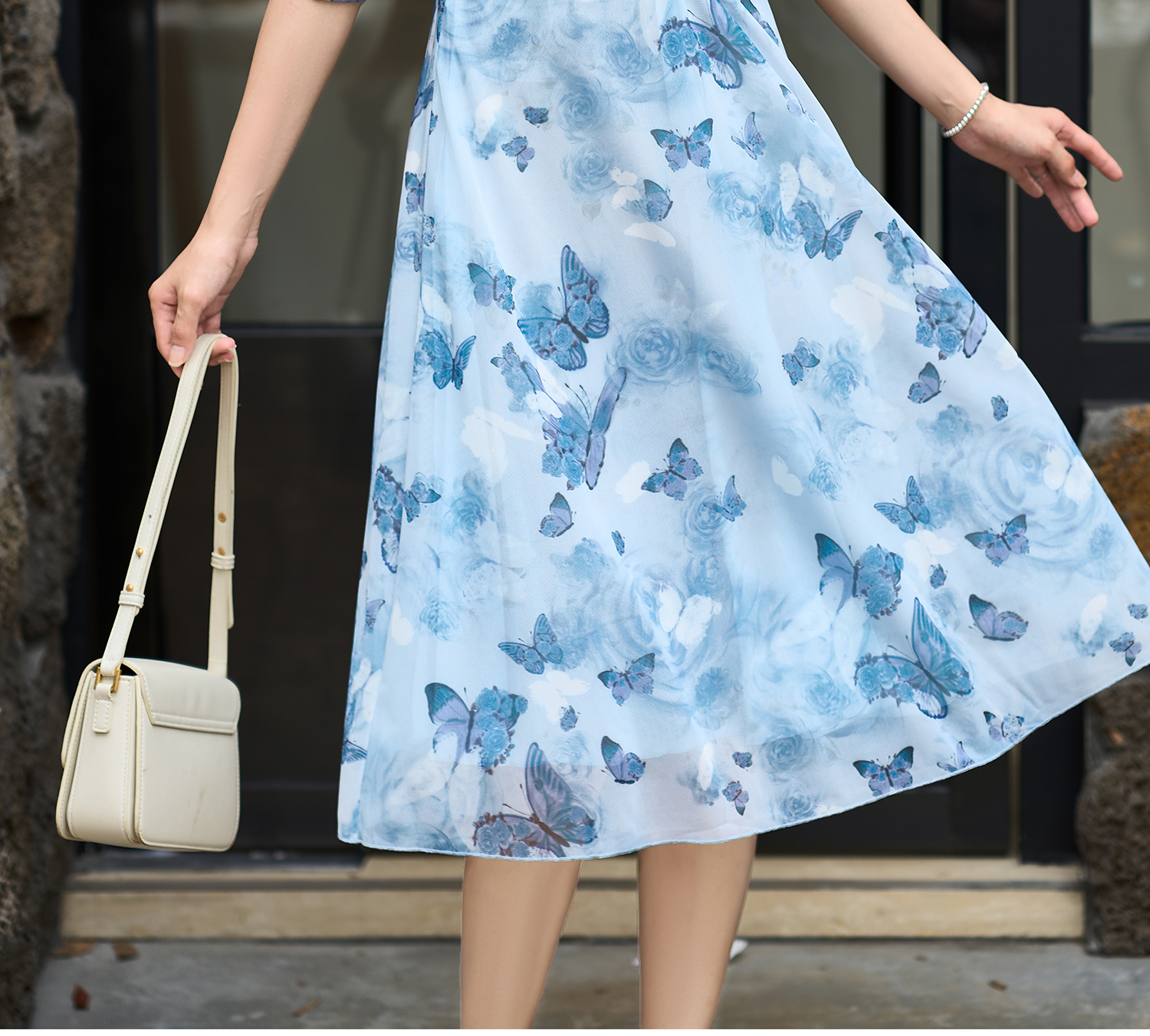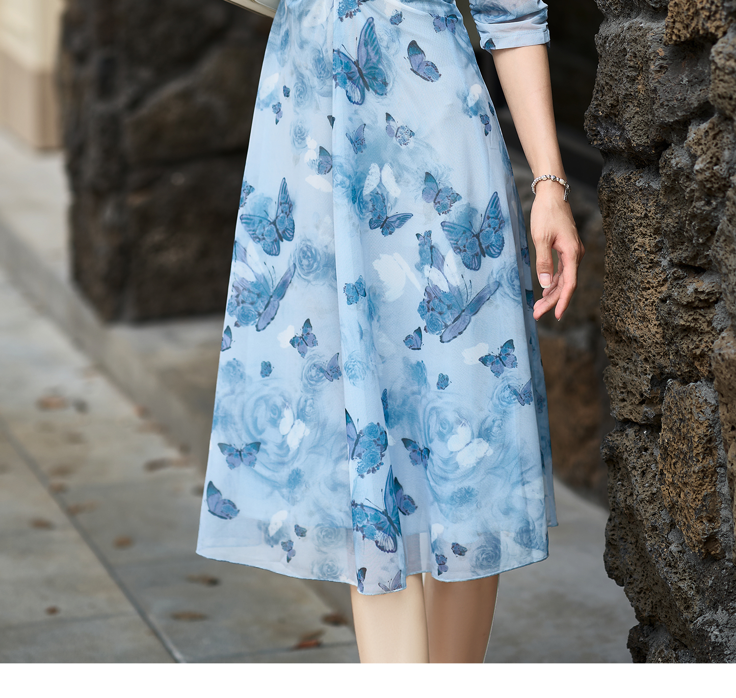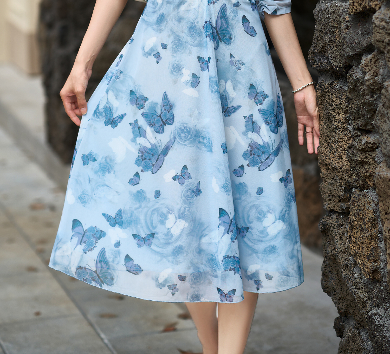 米思阳2026春季网纱裙浪漫法式印花裙设计感抽褶清新粉色连衣裙3711