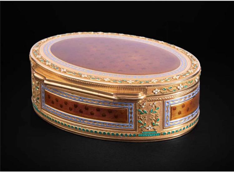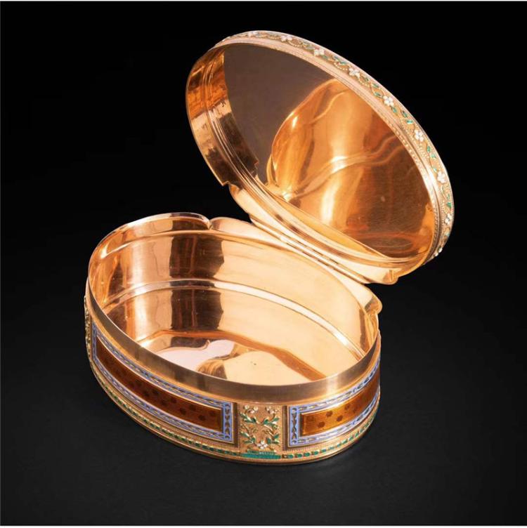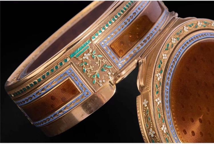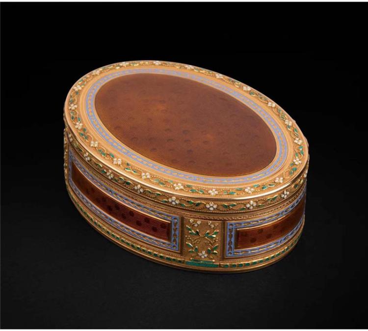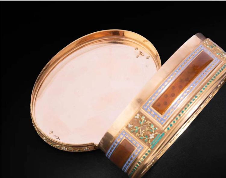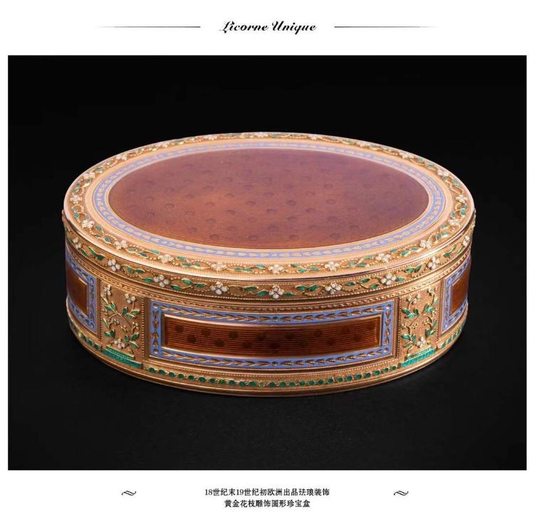 独角鹿西洋古董摆件欧洲珐琅装饰黄金花枝雕饰圆形首饰盒珍宝盒