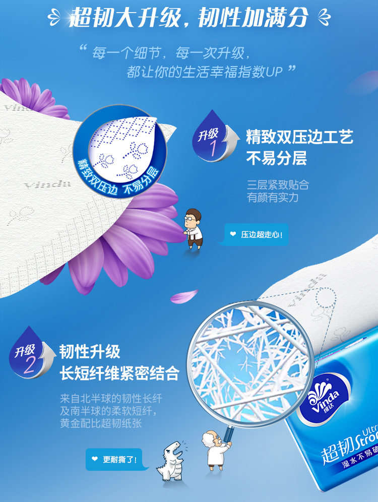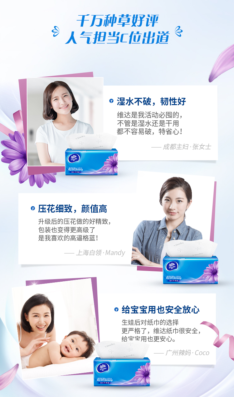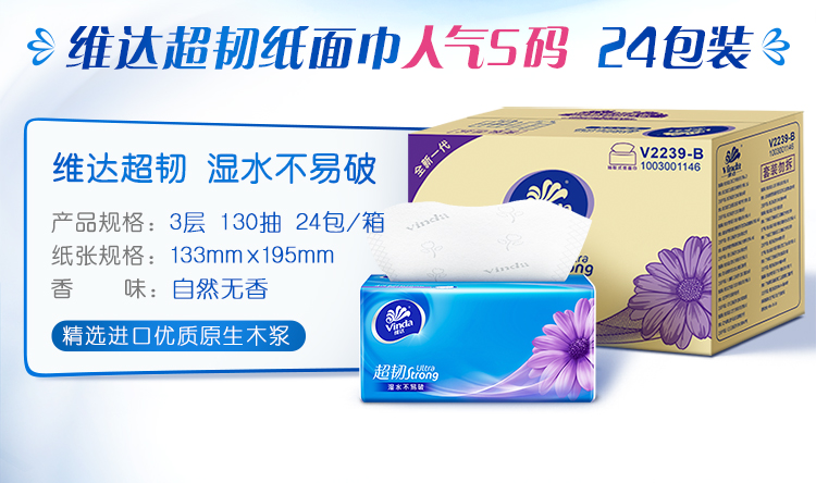 维达(Vinda) 超韧3层130抽*24包软抽 整箱销售 湿水不易破 母婴可用 抽取式面巾纸