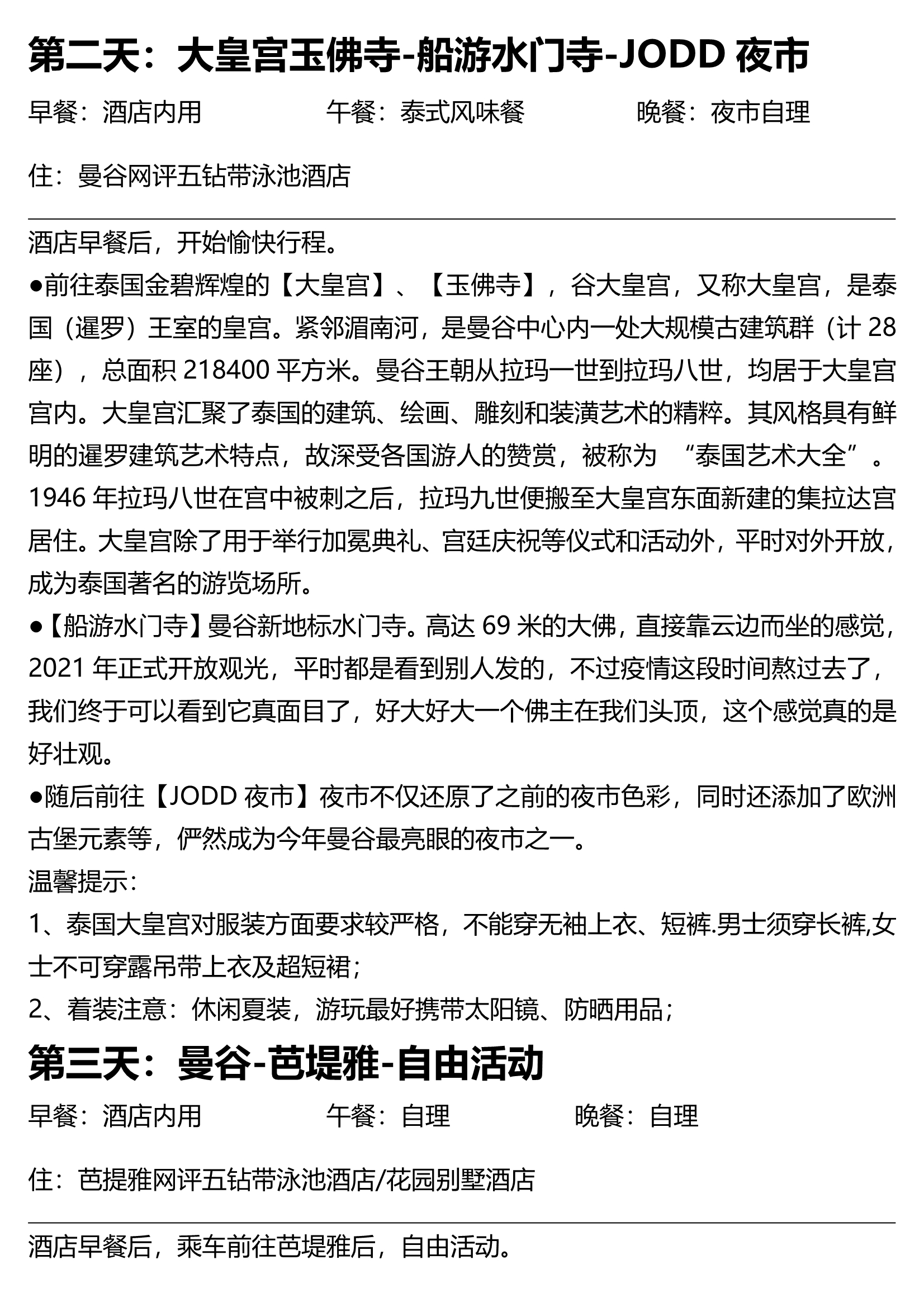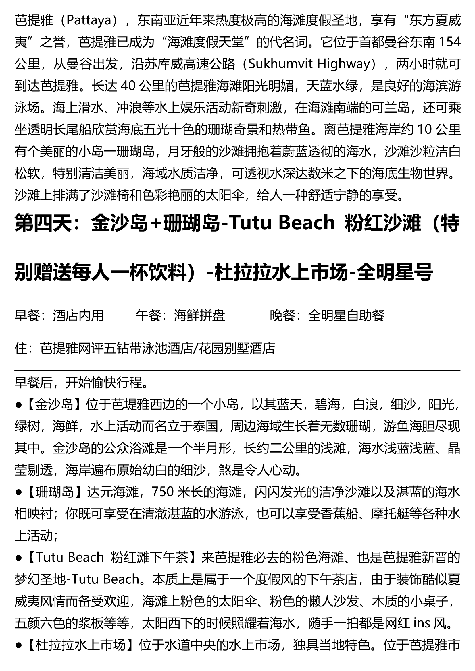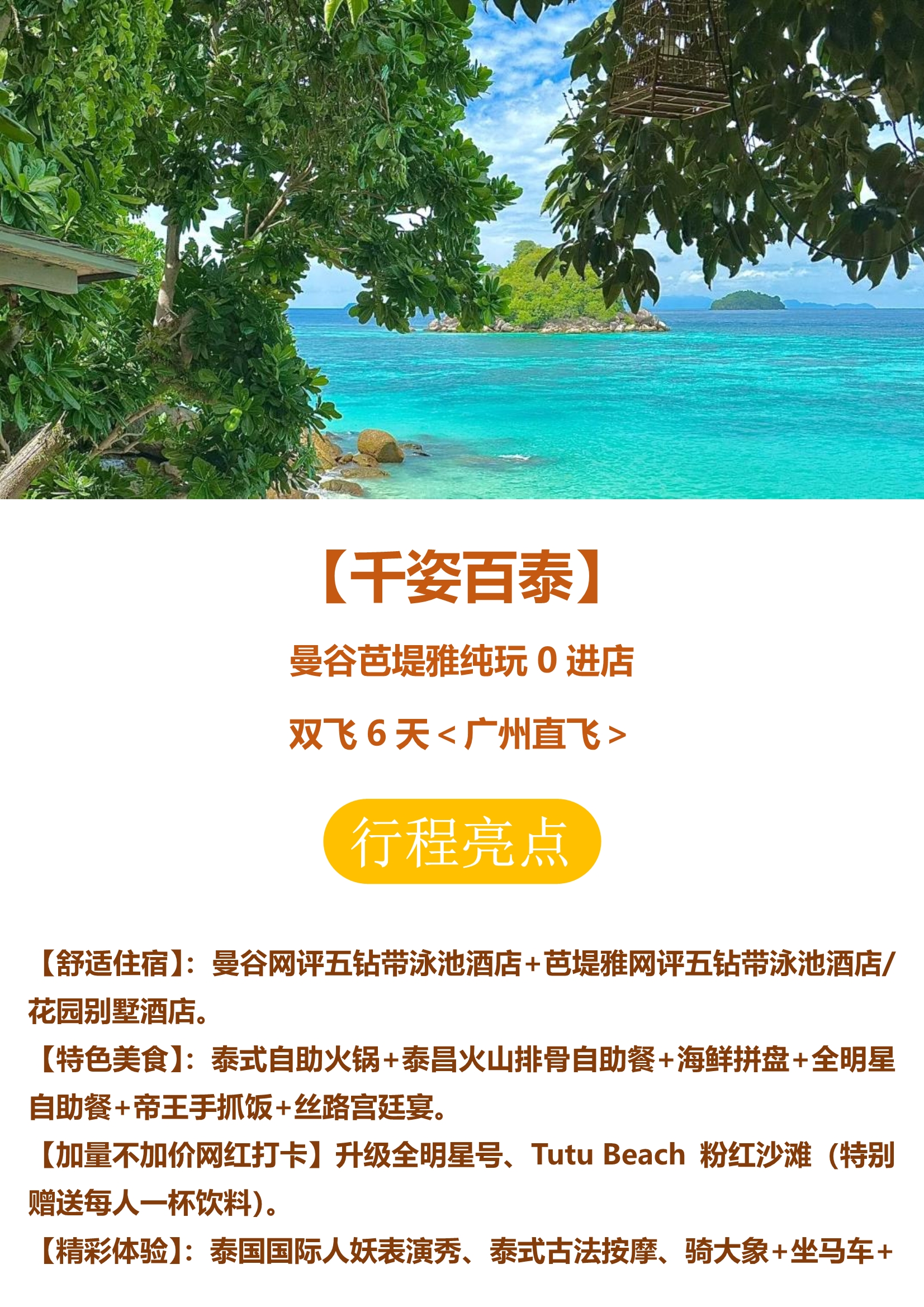 【千姿百泰】 曼谷芭堤雅纯玩双飞6天