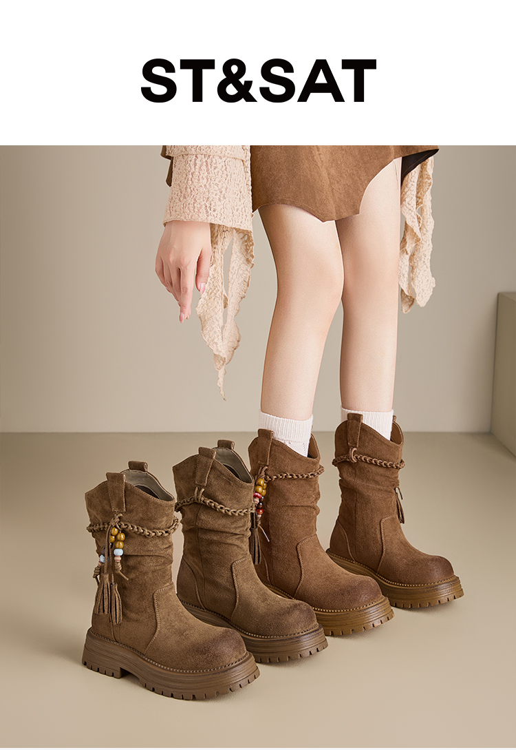 星期六废土风美拉德流苏堆堆靴SSD4116H0K