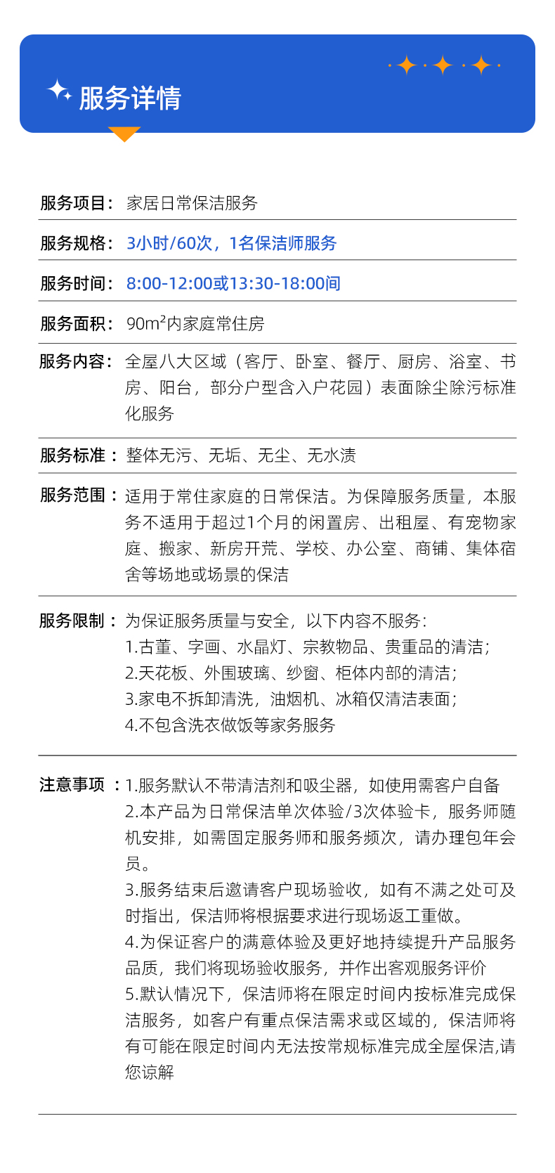 【双11加赠3次】60次×3小时 家居日常保洁服务