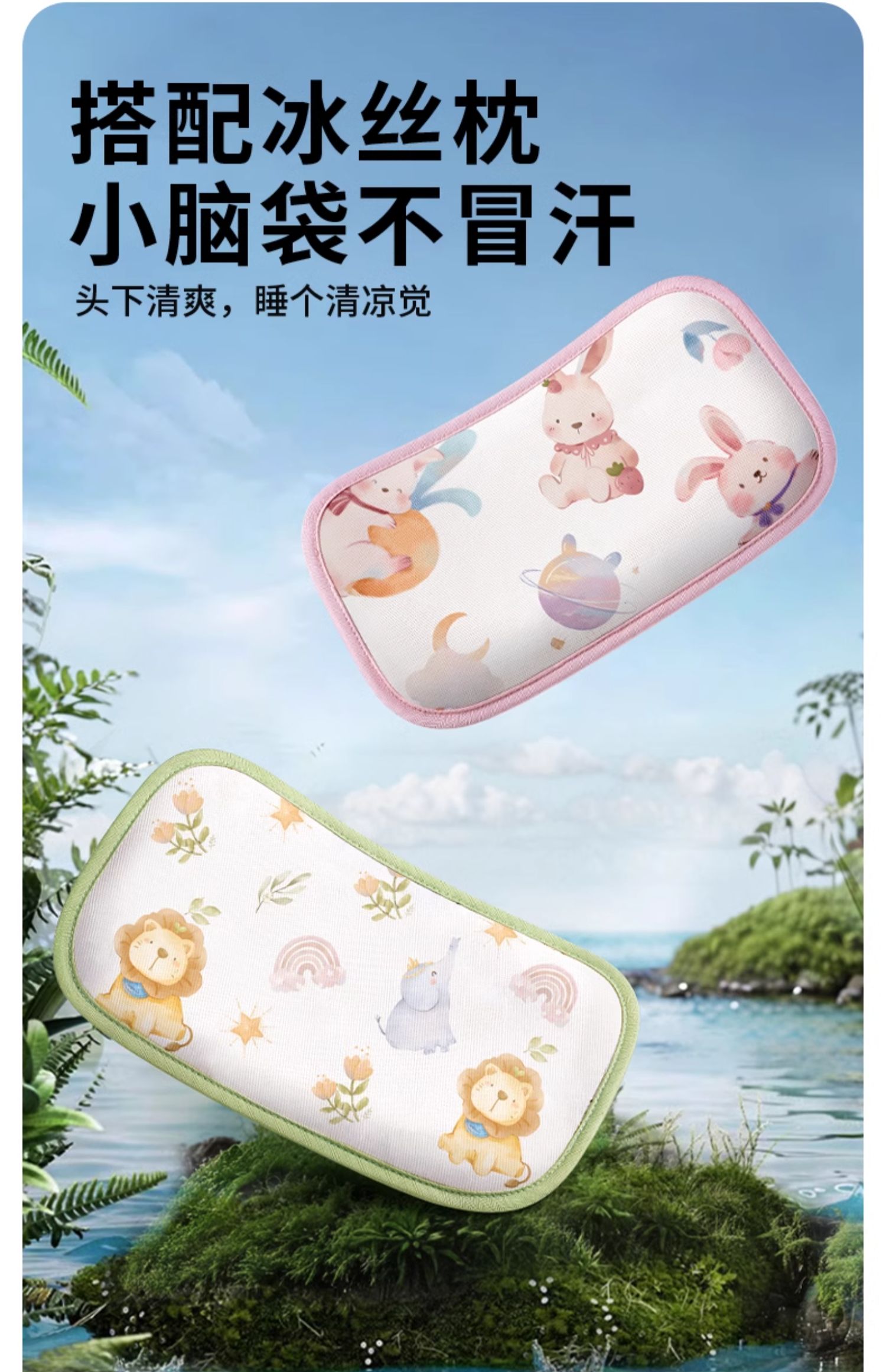 【清仓】婴儿夏季推车凉席坐躺垫子通用冰丝摇篮睡篮凉垫【实物包边颜色为蓝色,不支持退换介意慎拍!】