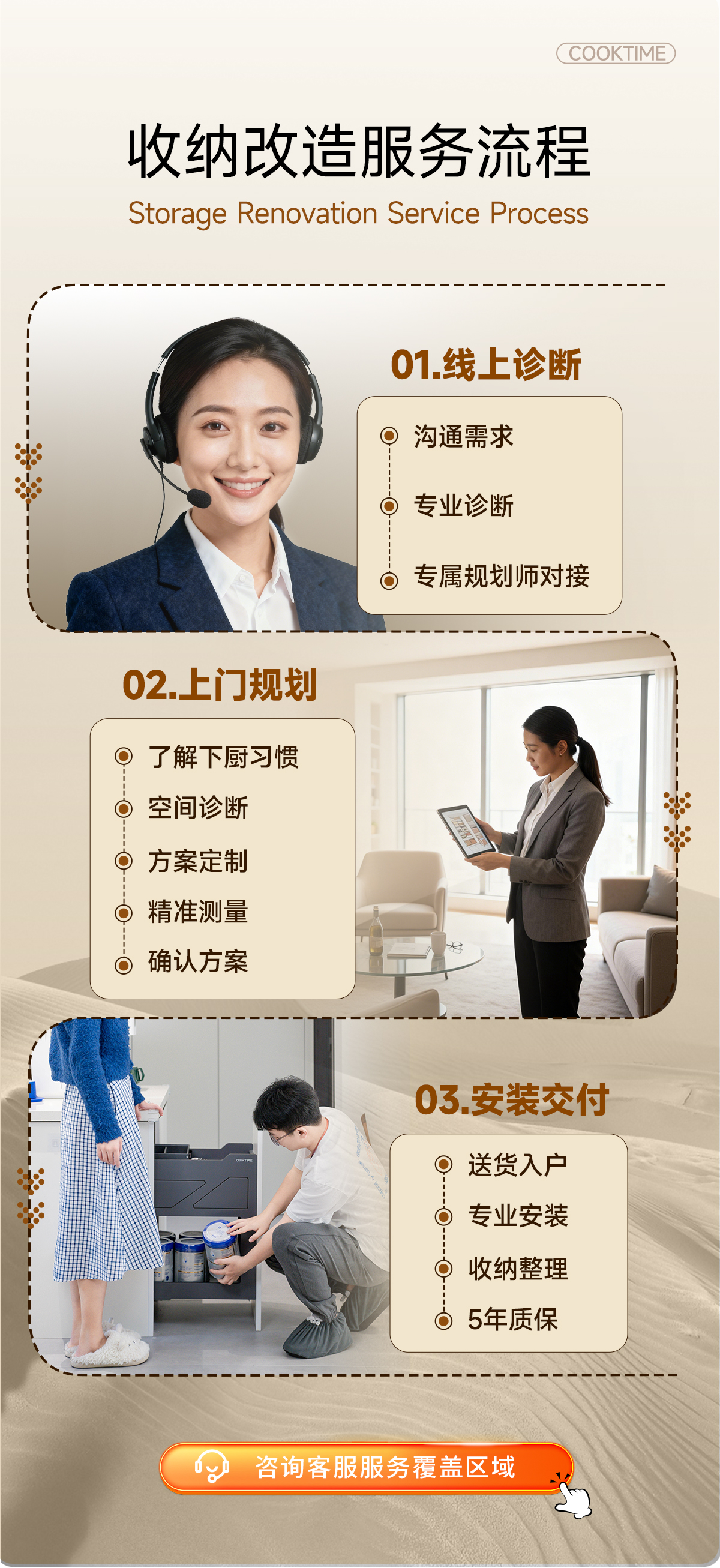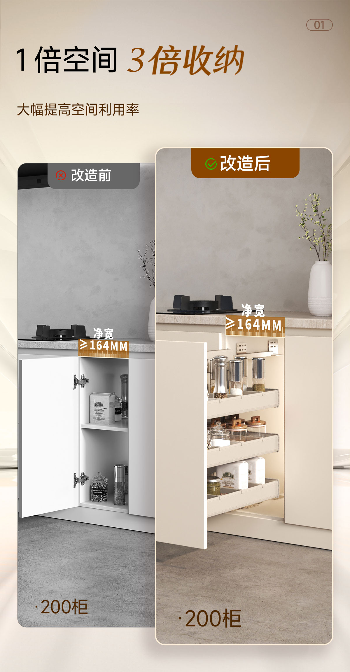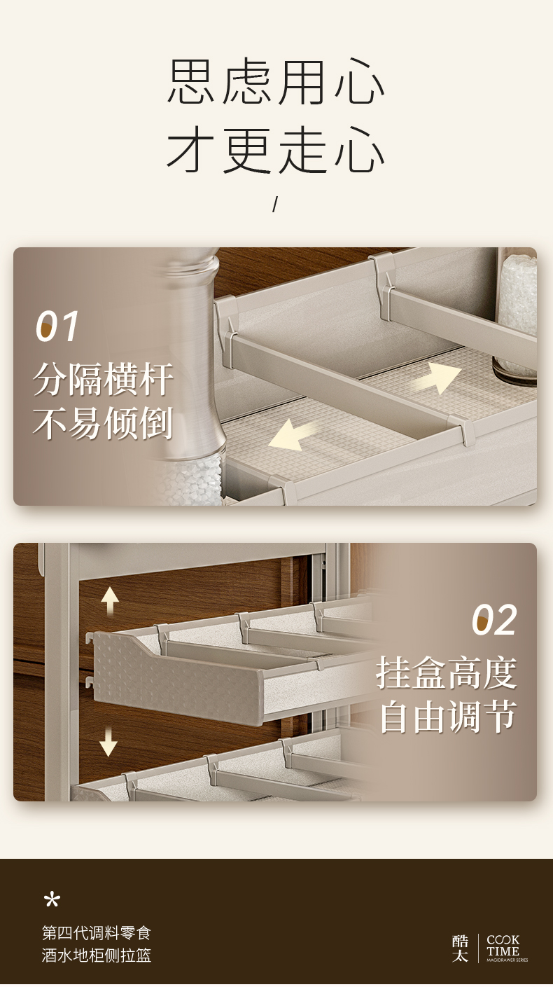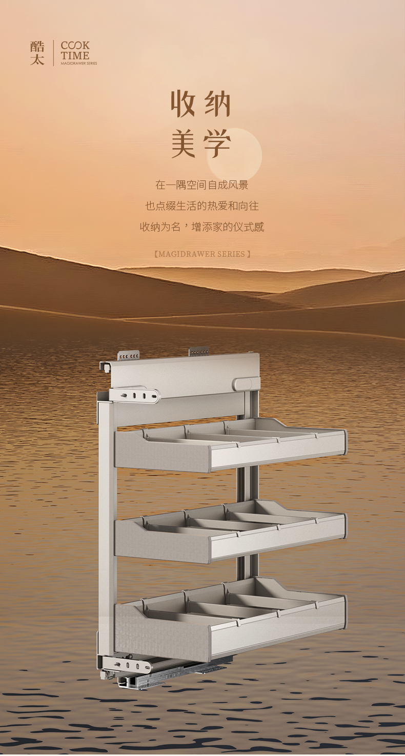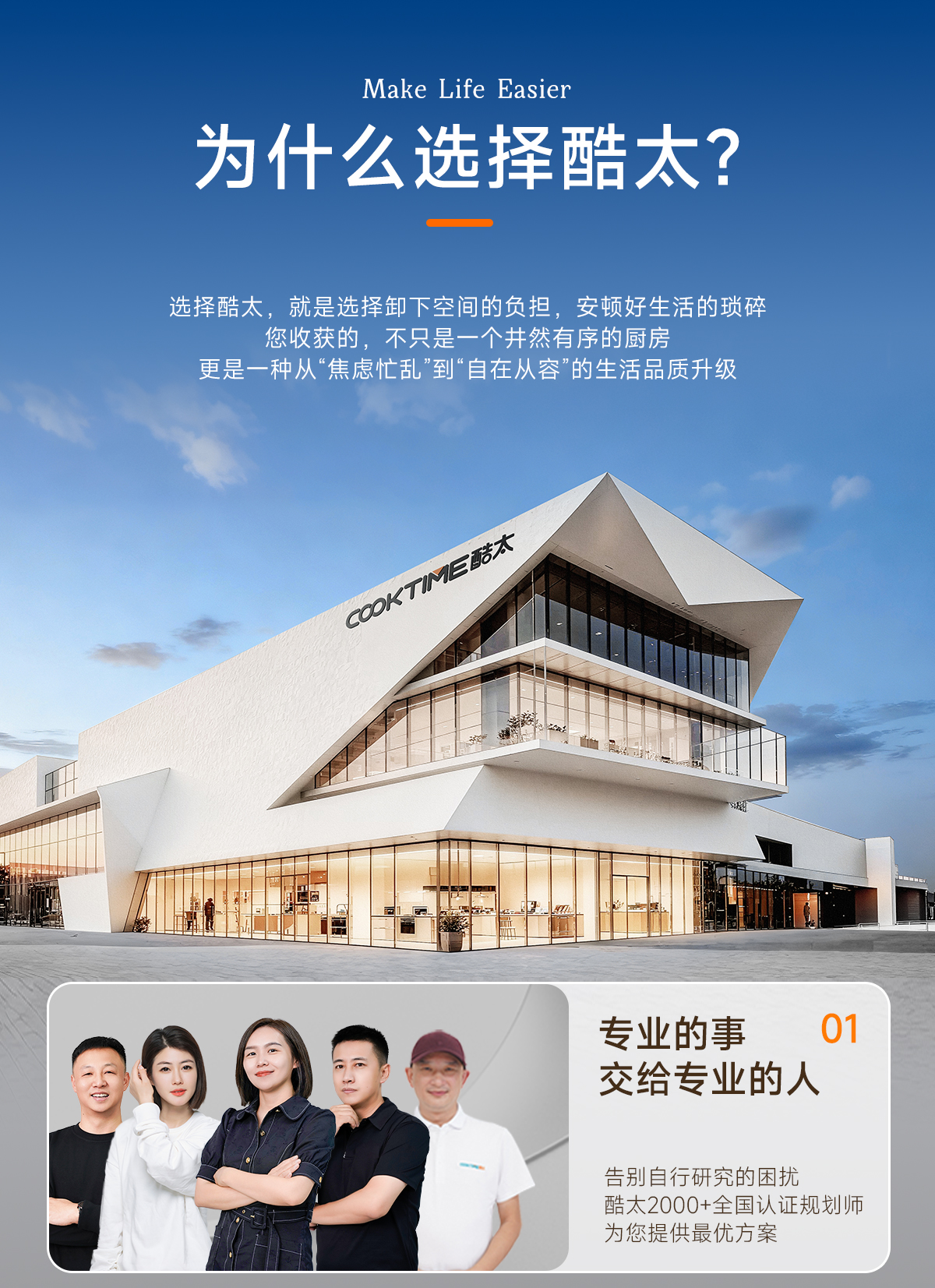 - 酷太坚持8年自主研发,已获得专利证书130项,拥有一套领先市场的厨房收纳系统,为千万中国家庭解决厨房脏乱差,缔造厨房新生活。