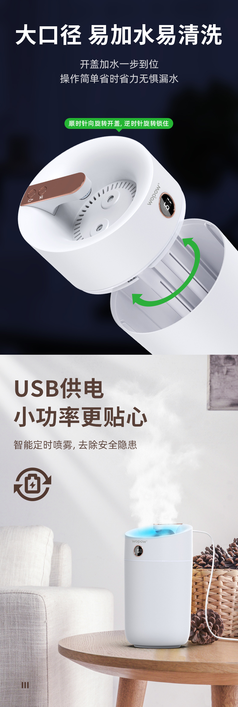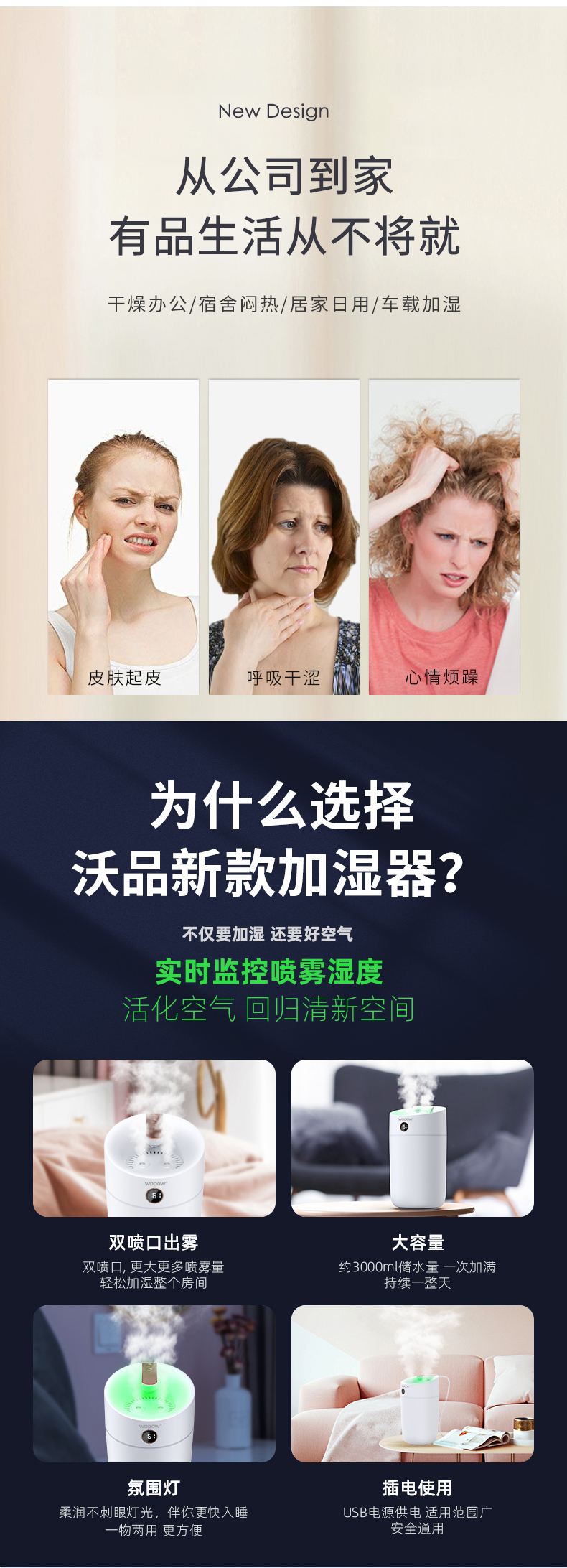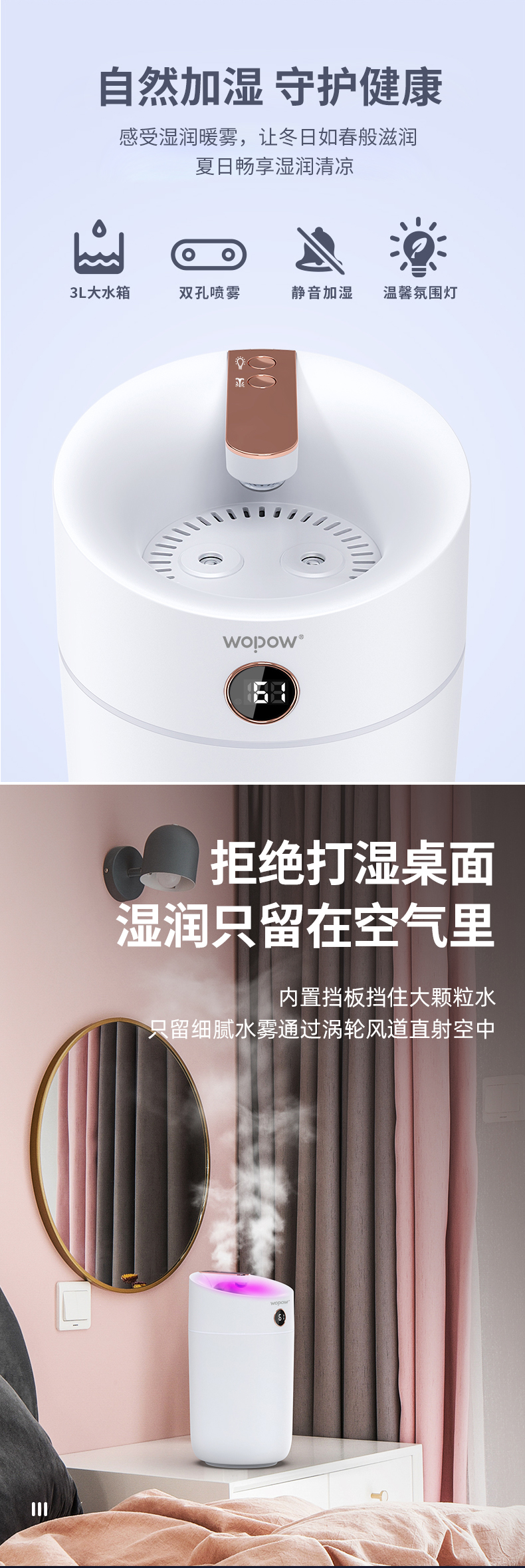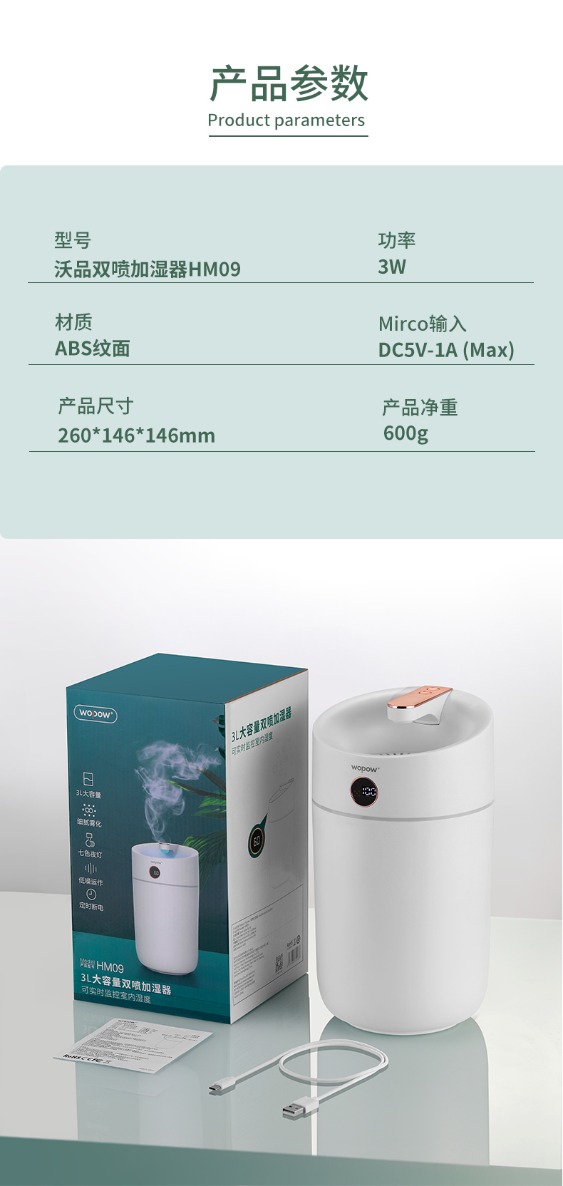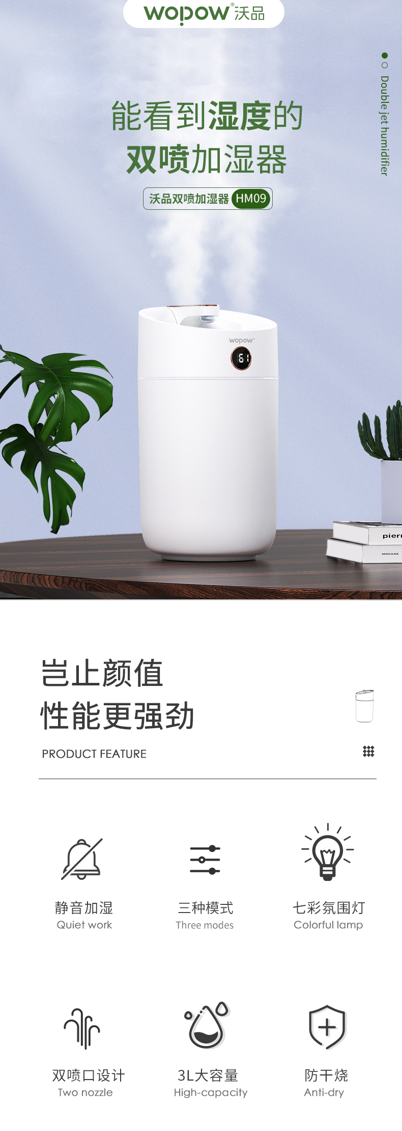 沃品 家用双喷加湿器 HM09