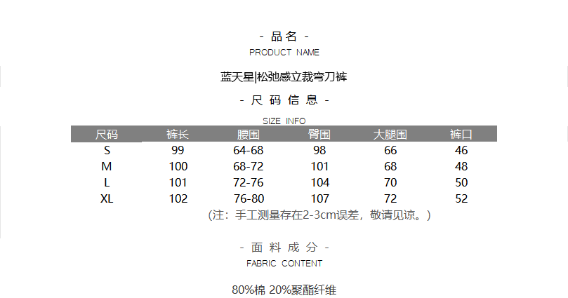 蓝天星|松弛感立裁弯刀裤