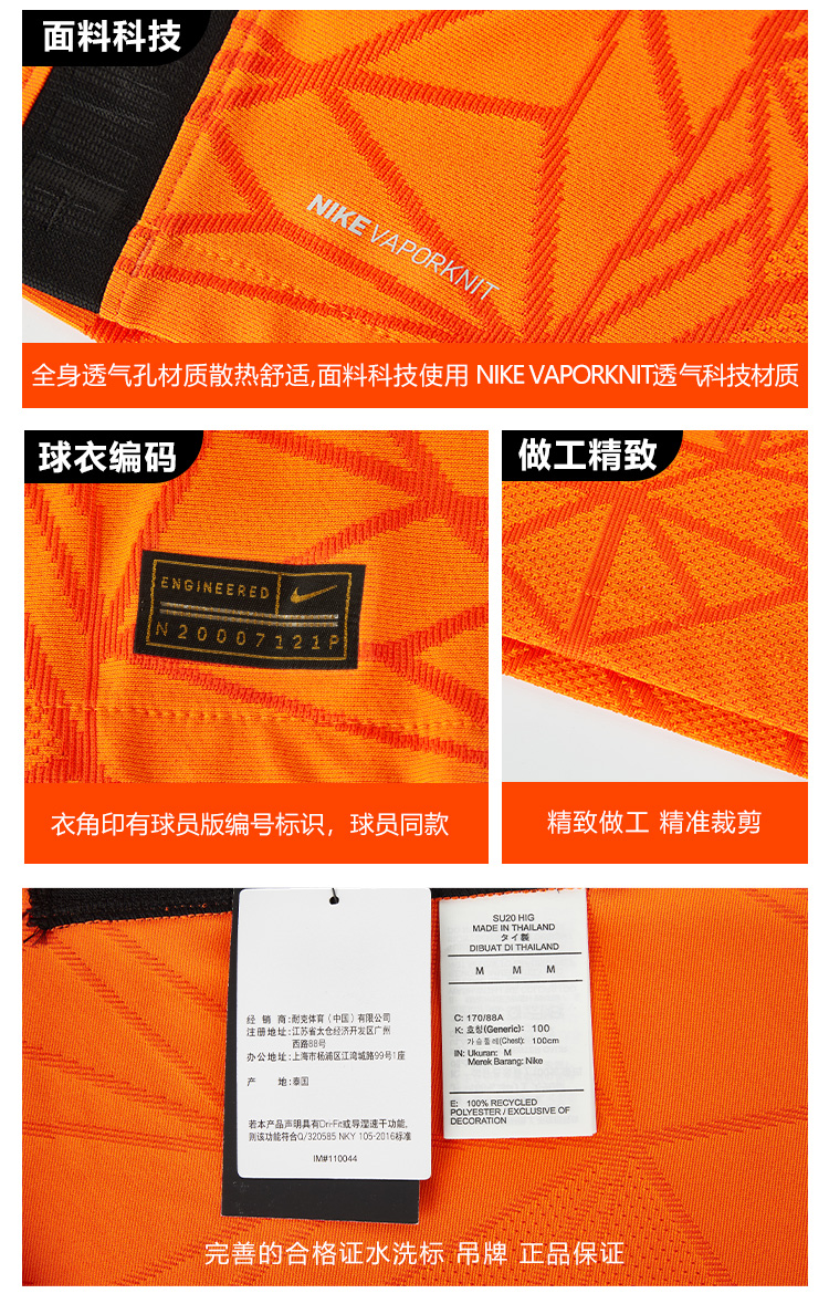 【送球员印号】SFS耐克正品 2021欧洲杯荷兰队球员版主场球衣足球服 CD0589-819