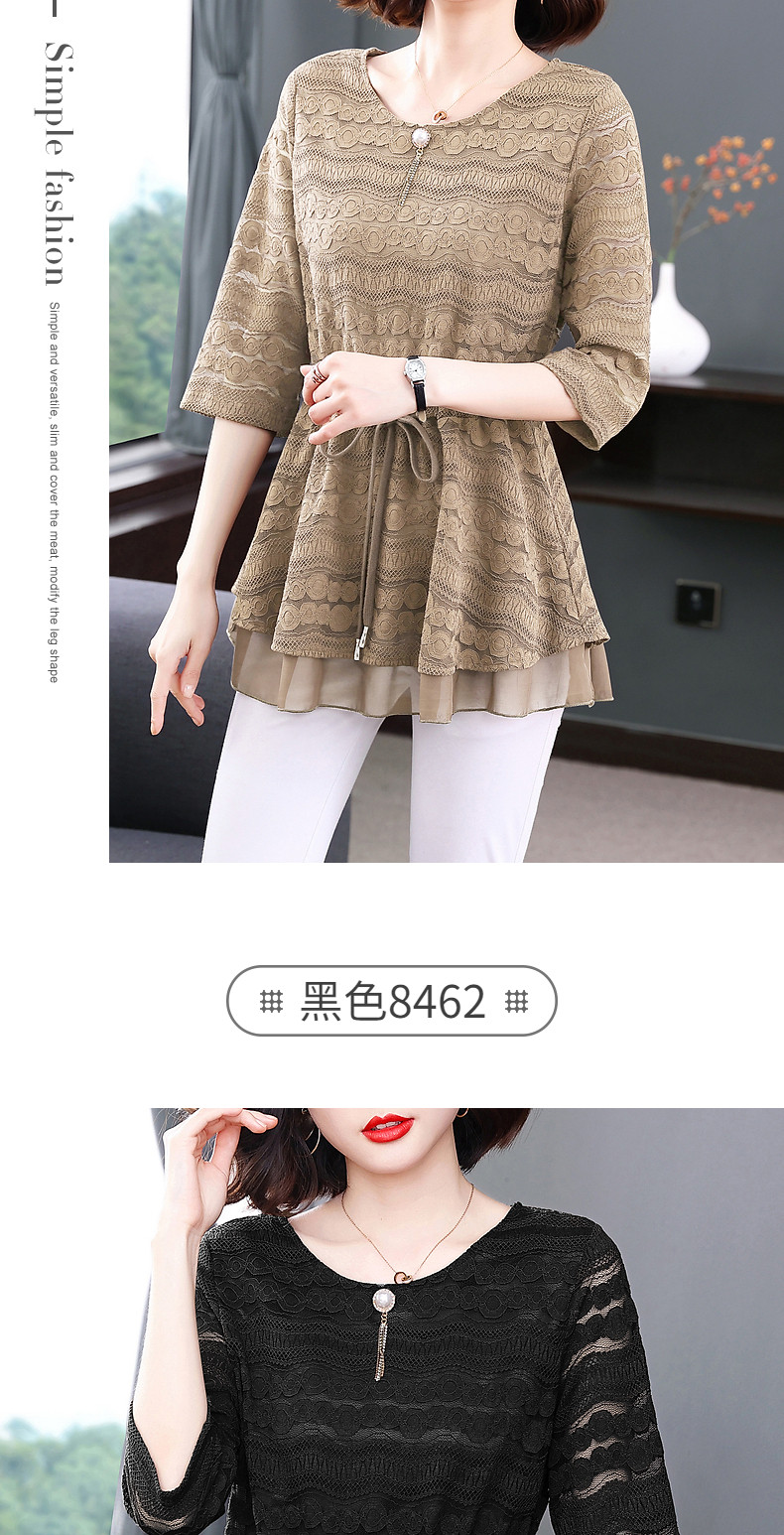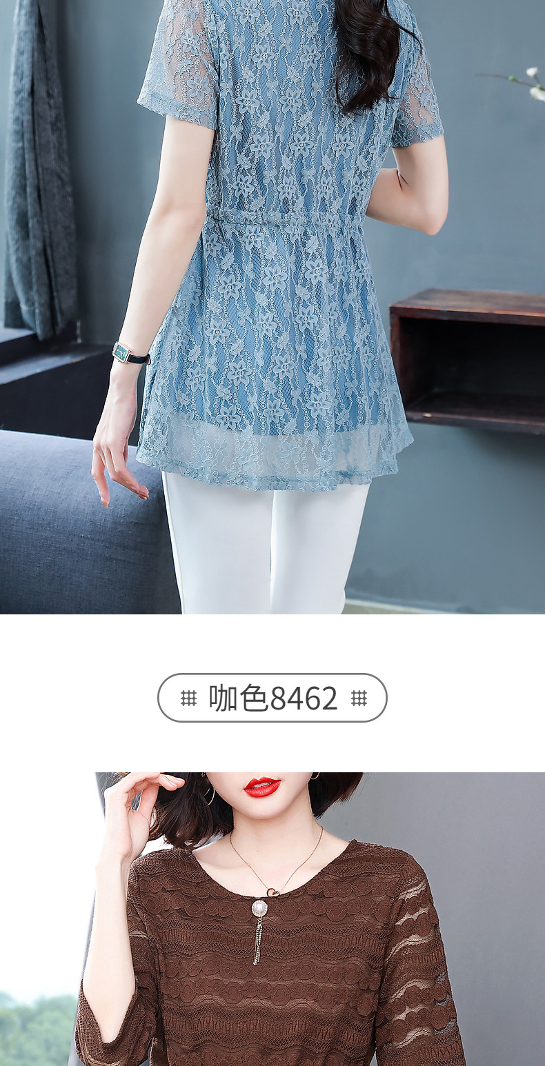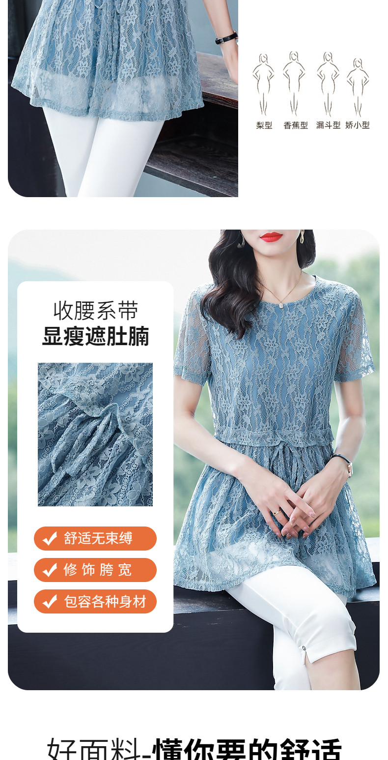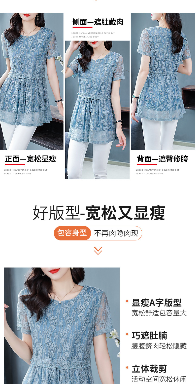 大码蕾丝衫女2026夏季新款宽松中长款收腰遮肚子显瘦气质短袖上衣