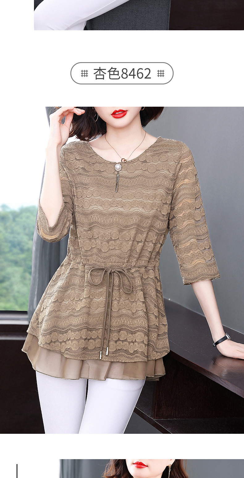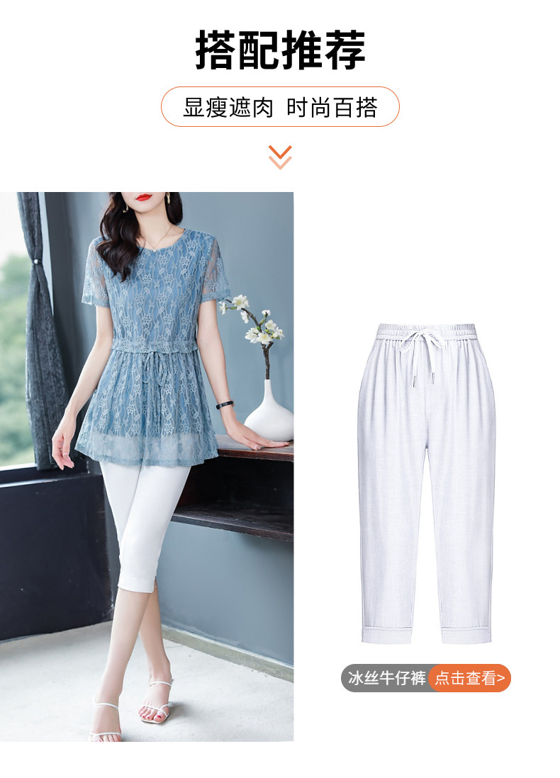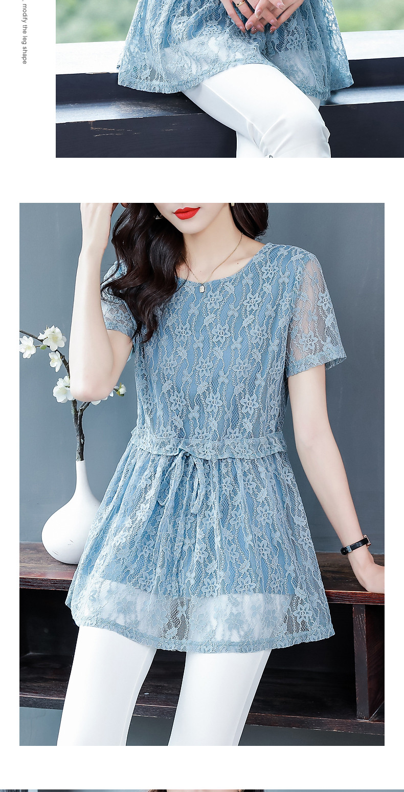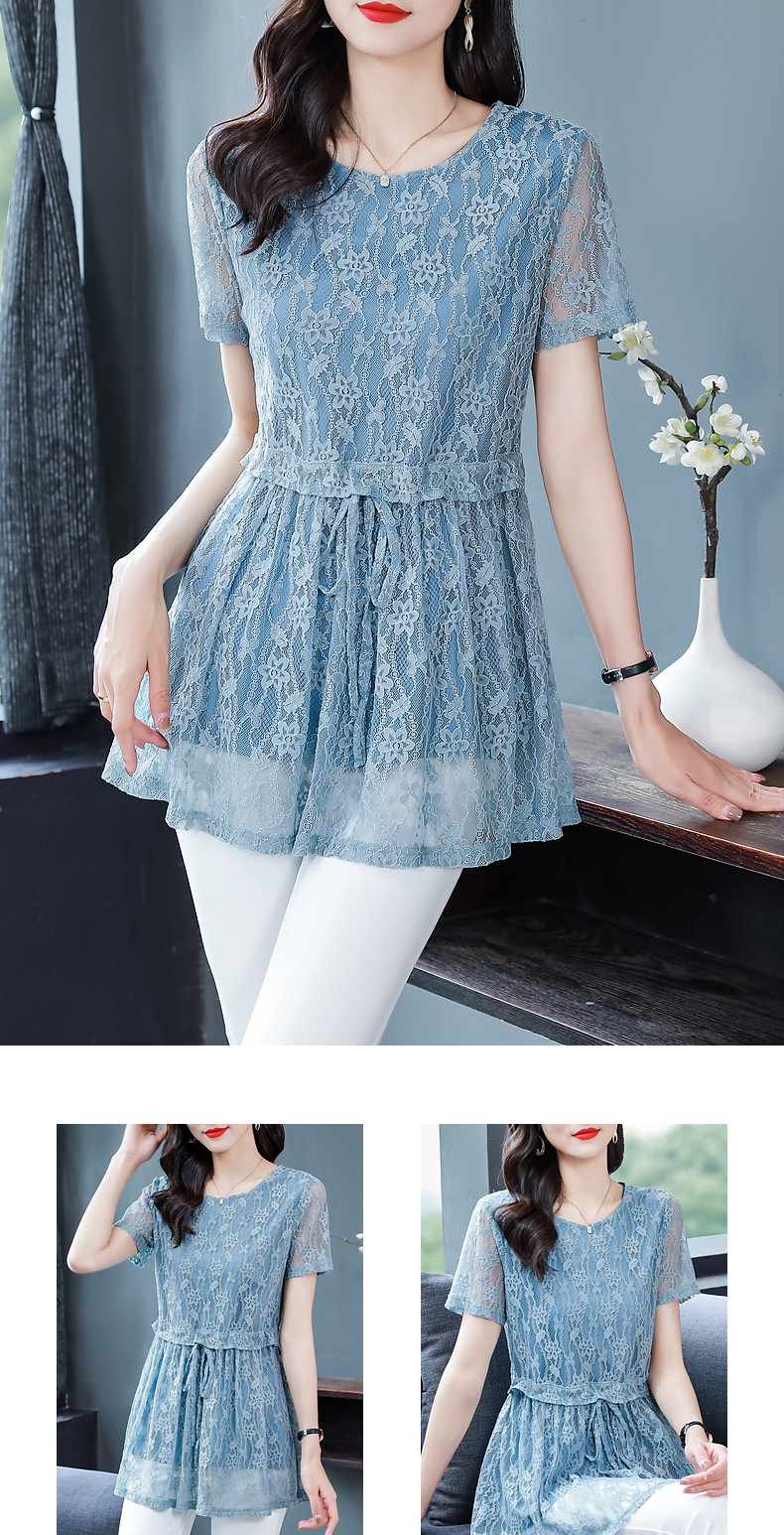 大码蕾丝衫女2026夏季新款宽松中长款收腰遮肚子显瘦气质短袖上衣