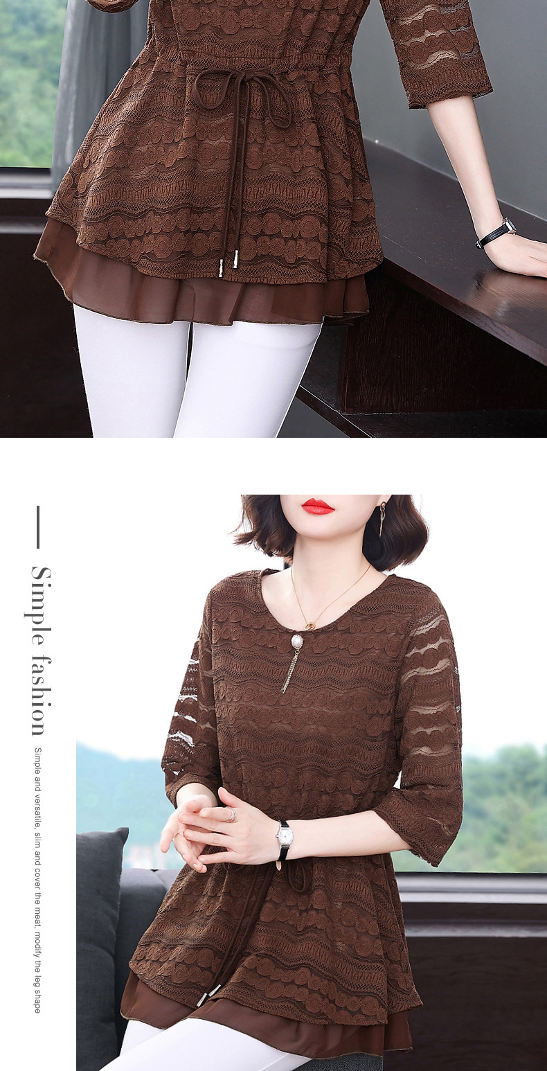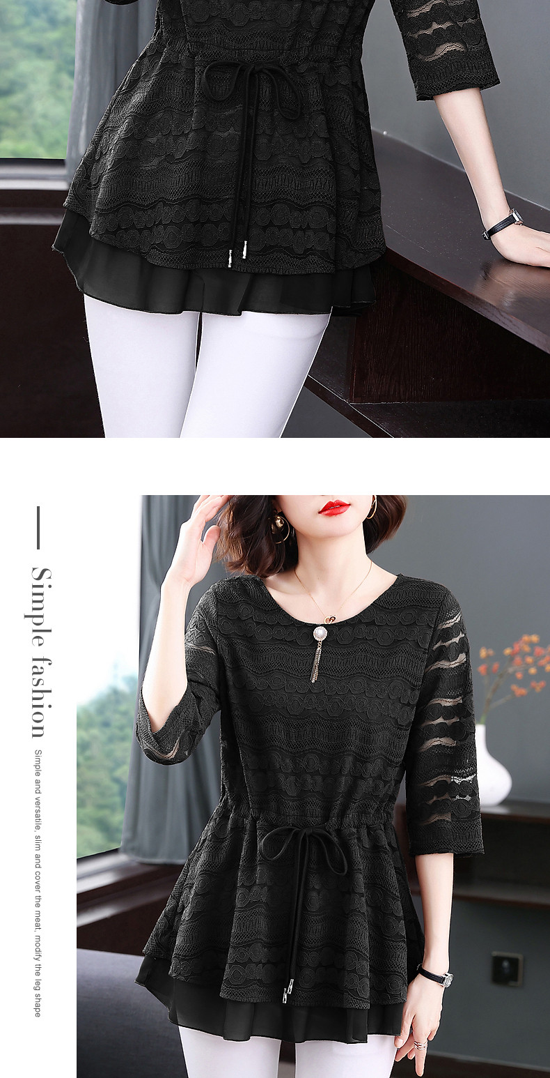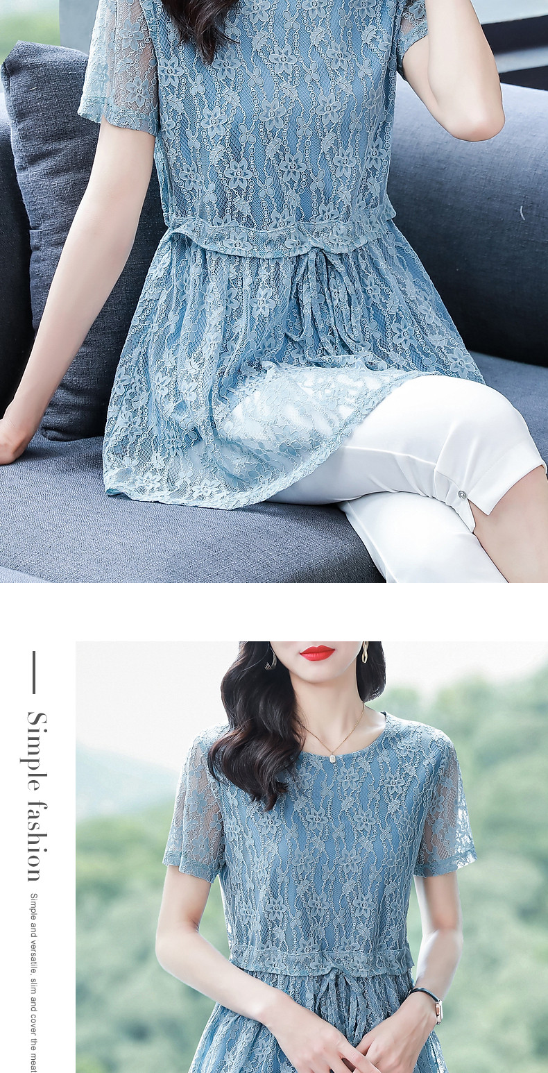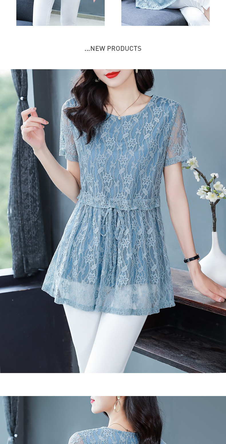 大码蕾丝衫女2026夏季新款宽松中长款收腰遮肚子显瘦气质短袖上衣