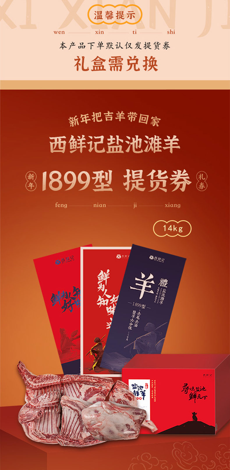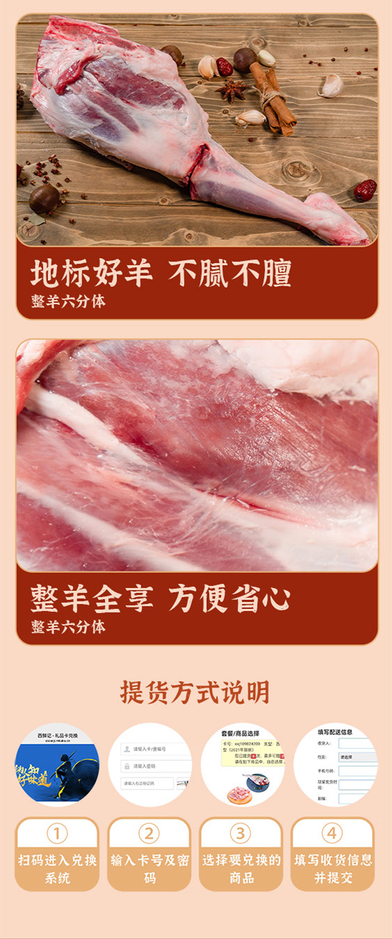 西鲜记 盐池滩羊提货券 1899型 整只羔羊六分体 烧烤季