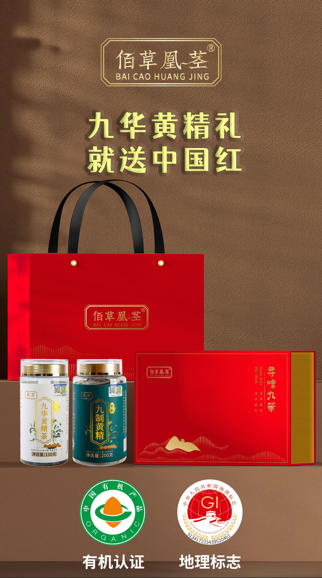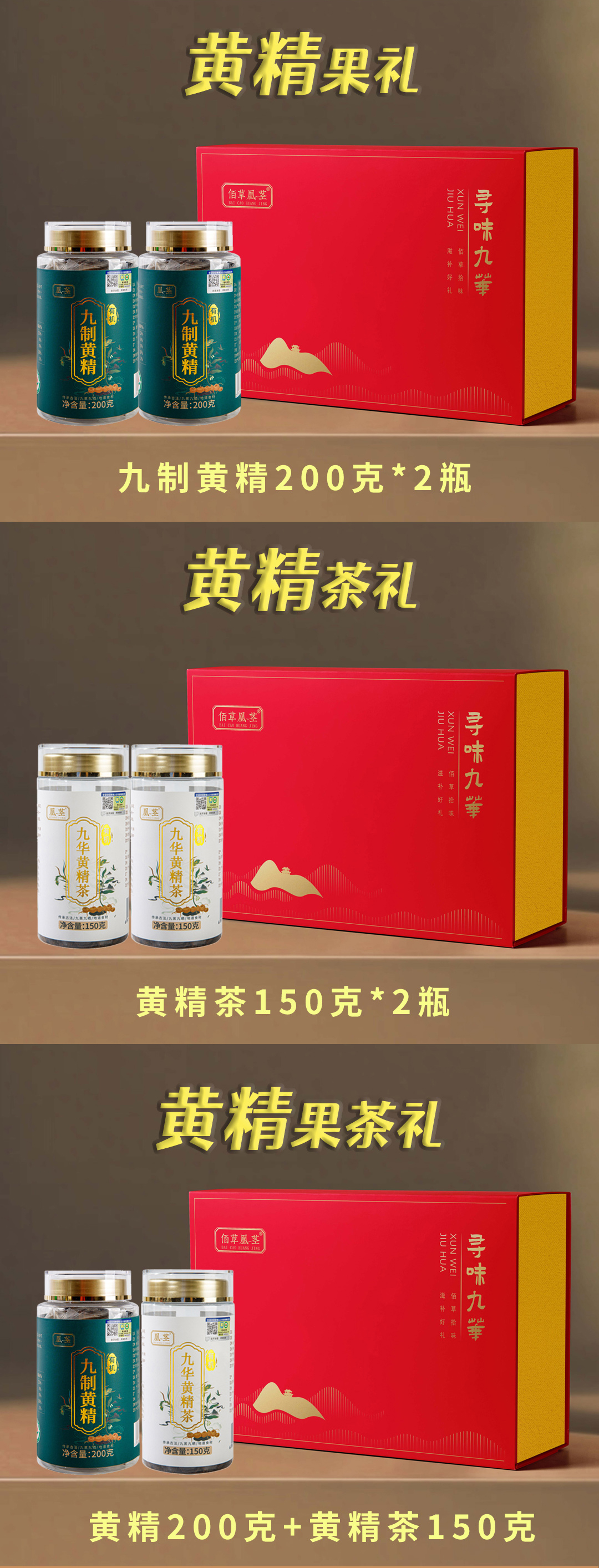 九华黄精礼盒佰草凰茎九制黄精正品断食辟谷九蒸九晒即食养生茶