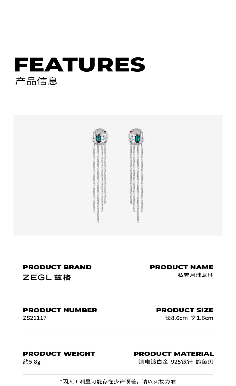 ZEGL设计师星星耳钉女流苏耳环长款气质925银针耳饰2021年新款潮