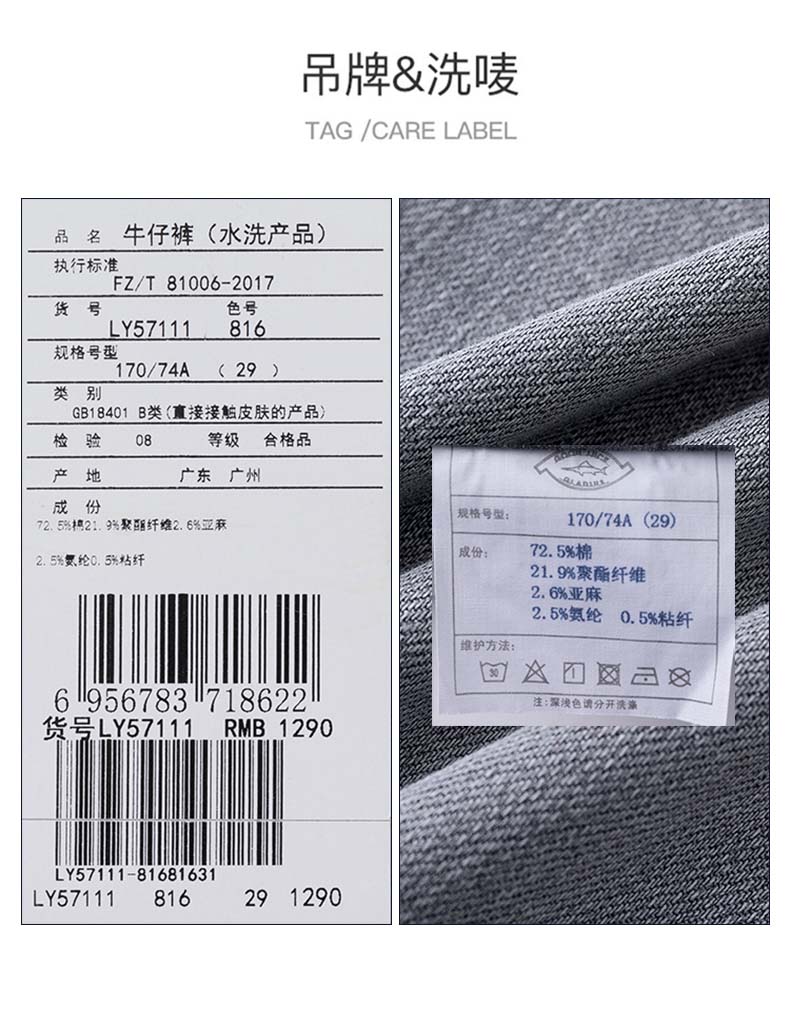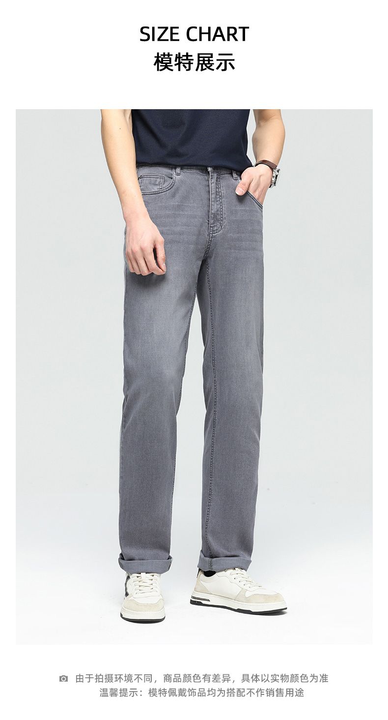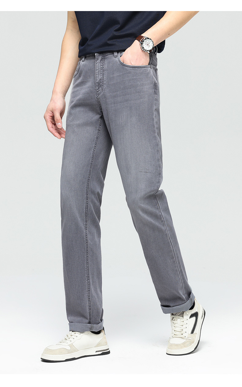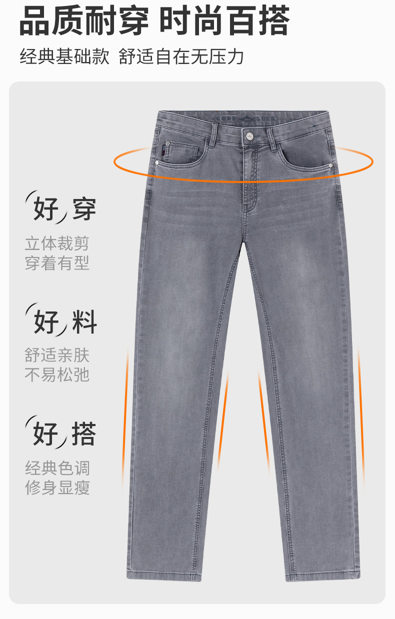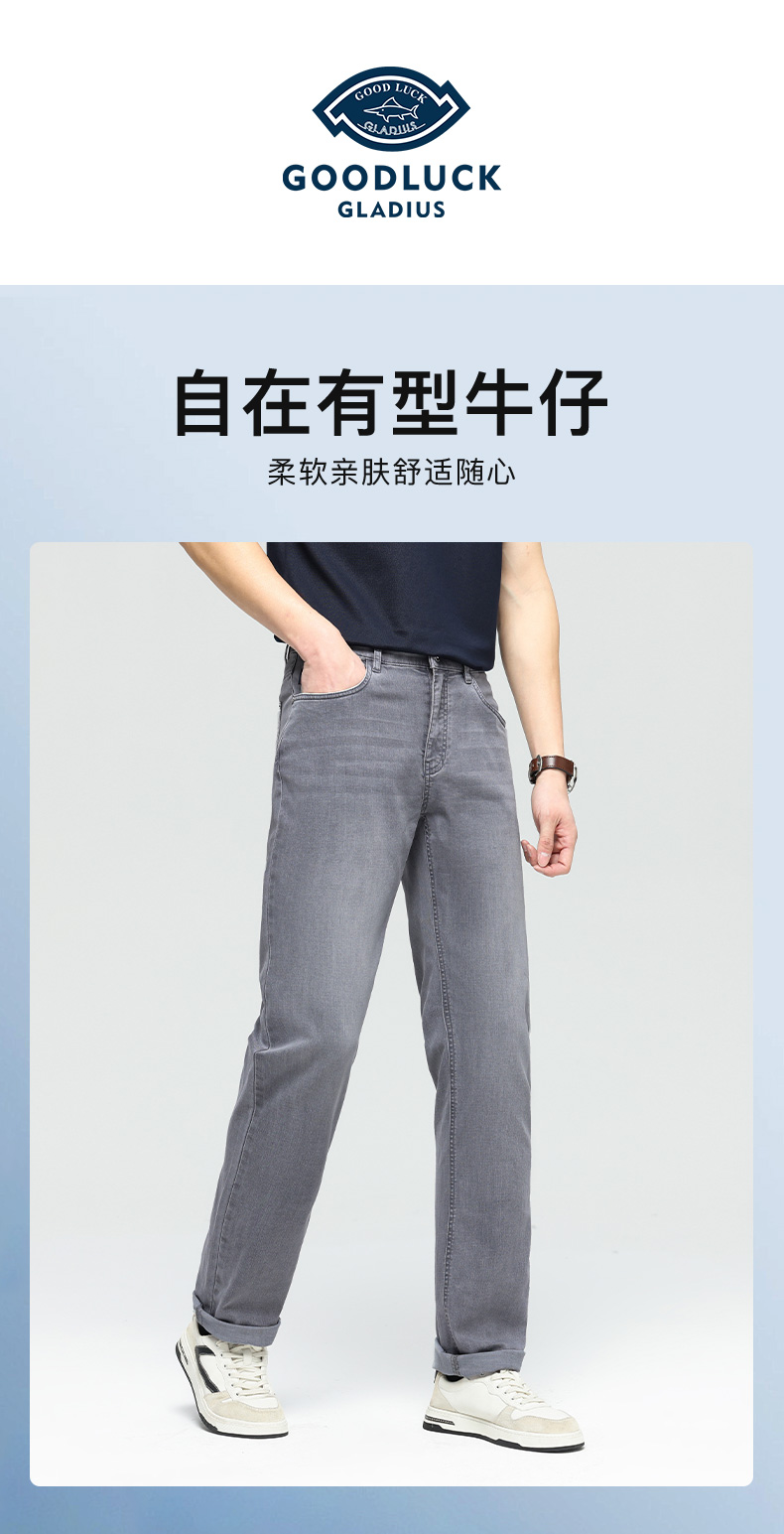 【棉混纺】德鲨灰色直筒牛仔裤男青年2026春夏新品弹力休闲裤长裤