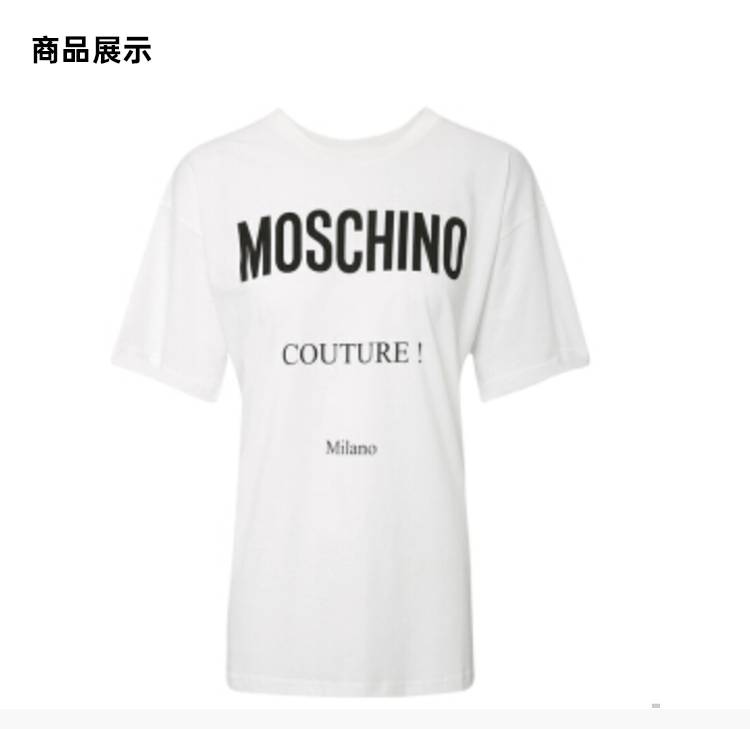 MOSCHINO 莫斯奇诺 女士白色棉质logo印花图案短袖T恤 0702 5540 1002