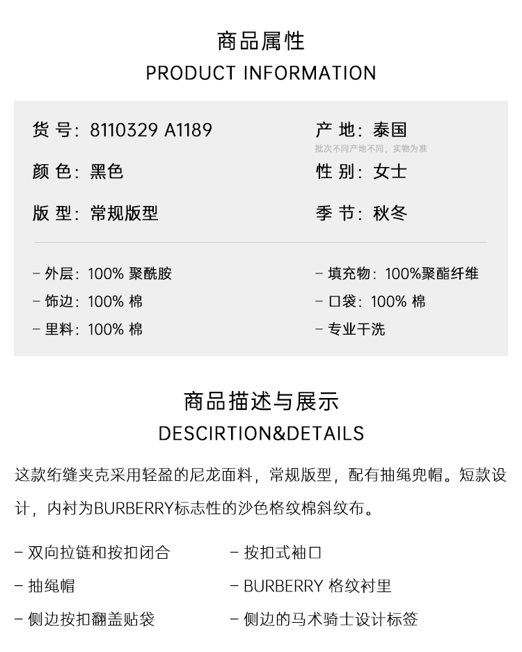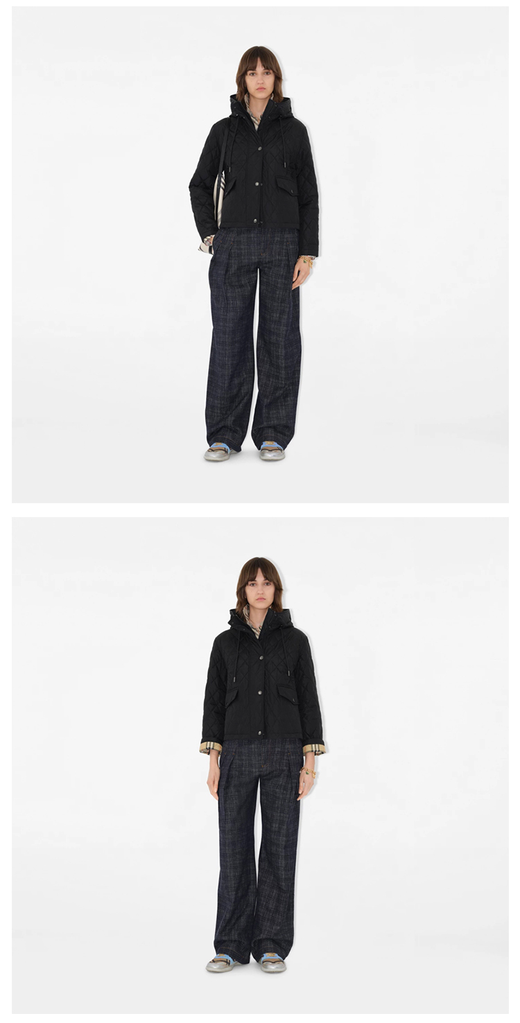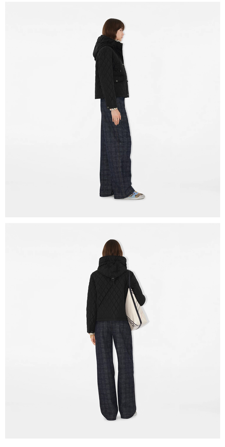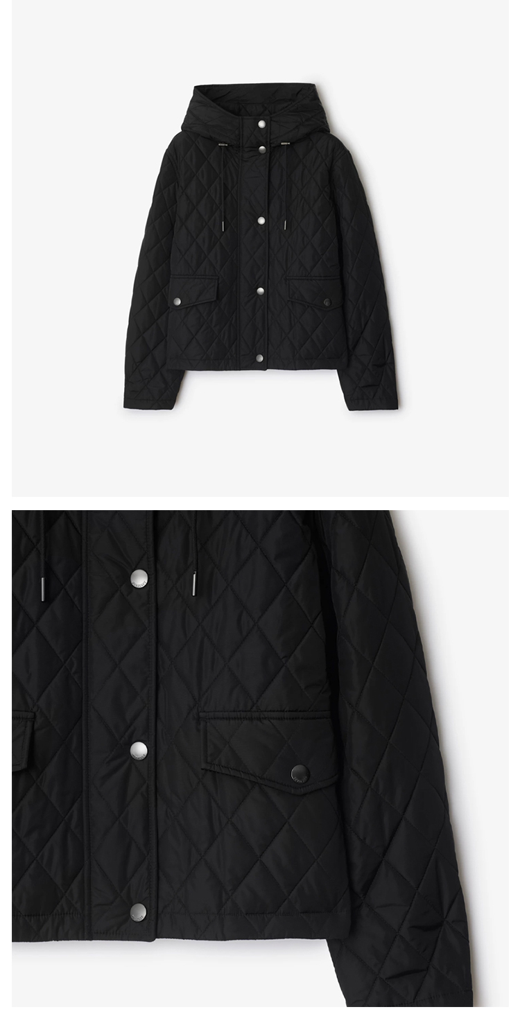BURBERRY 巴宝莉 女士马术骑士设计标签短款绗缝尼龙连帽棉服 黑色 8110329 A1189